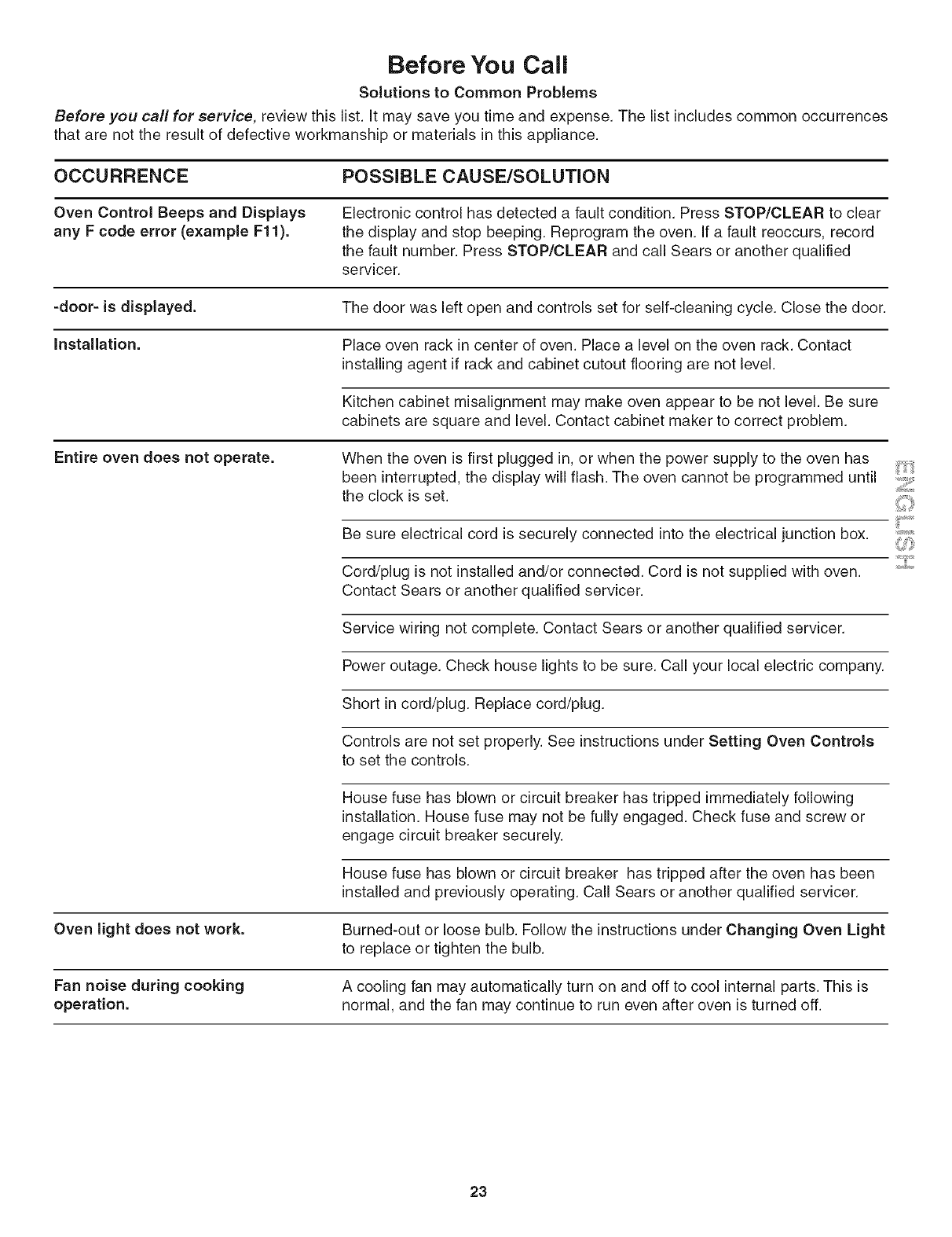 Before you call for service, review this list. it may save you time and expense. The list includes common occurrences
