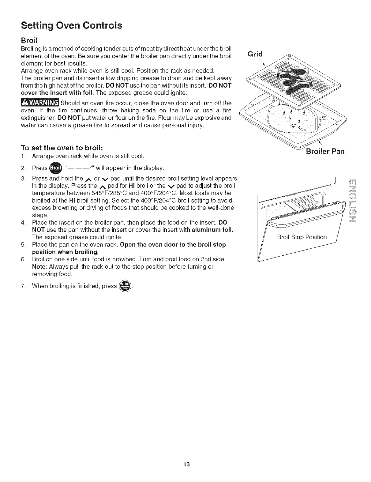 Broiler pan used without grid or grid cover with foil. DO NOT use the broiler