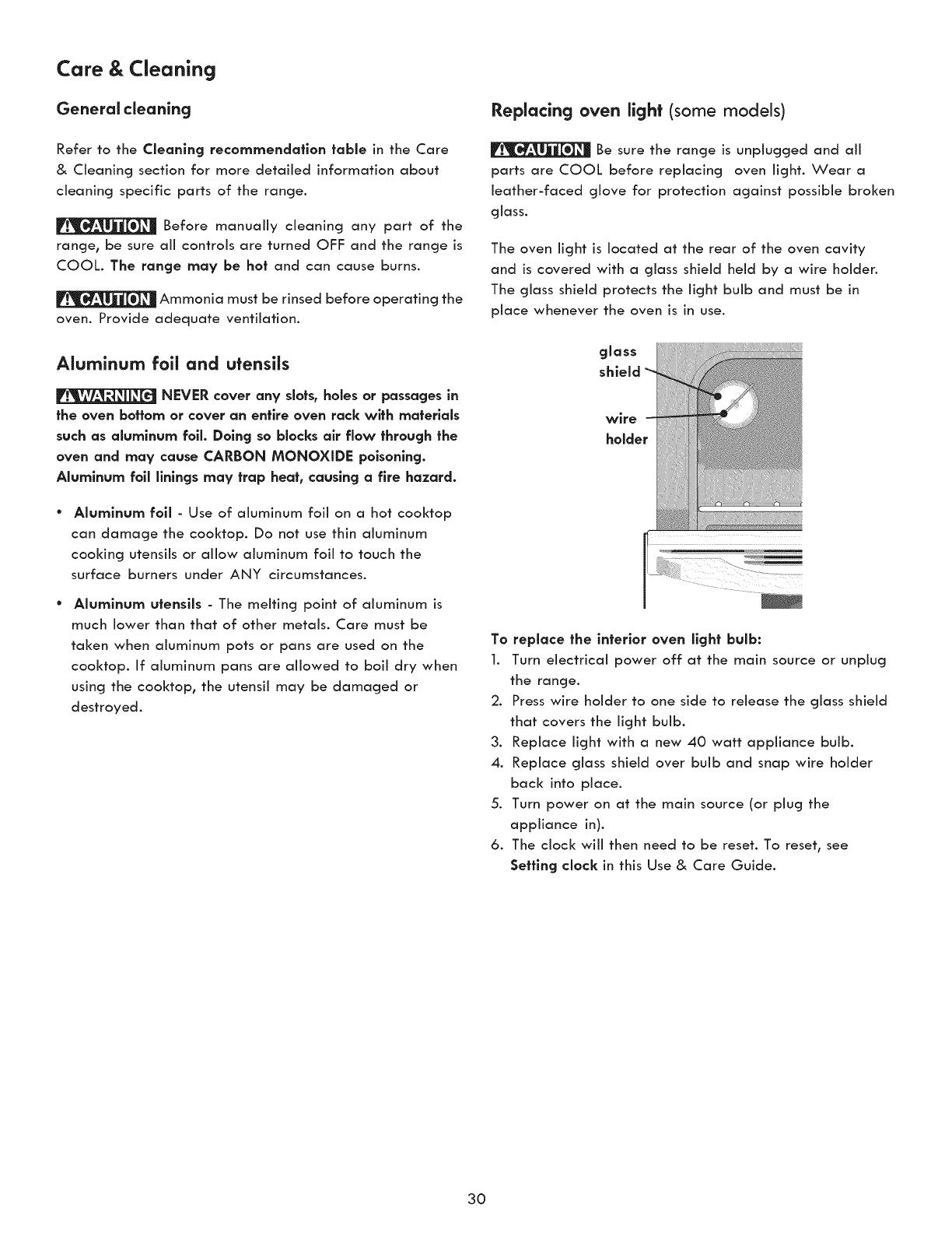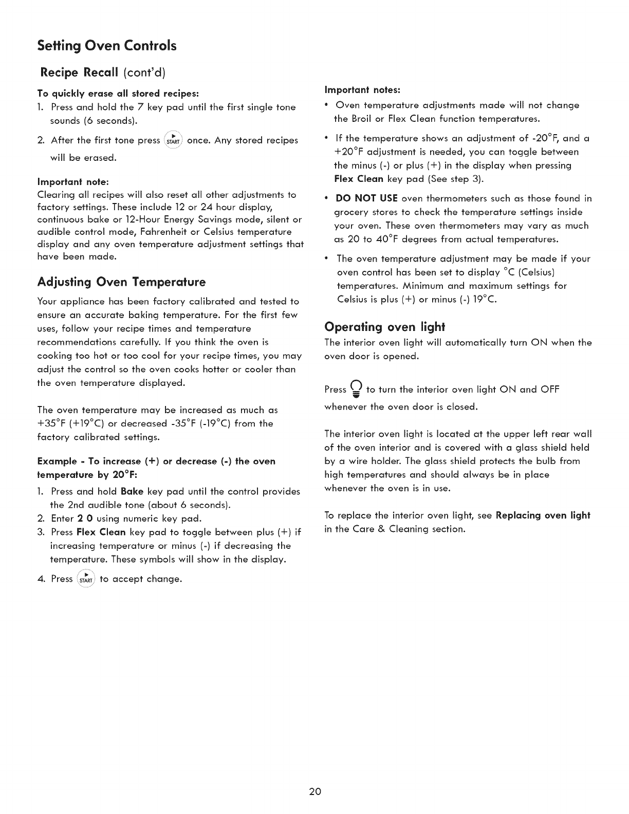 Operating Oven Light ........................................................ 20