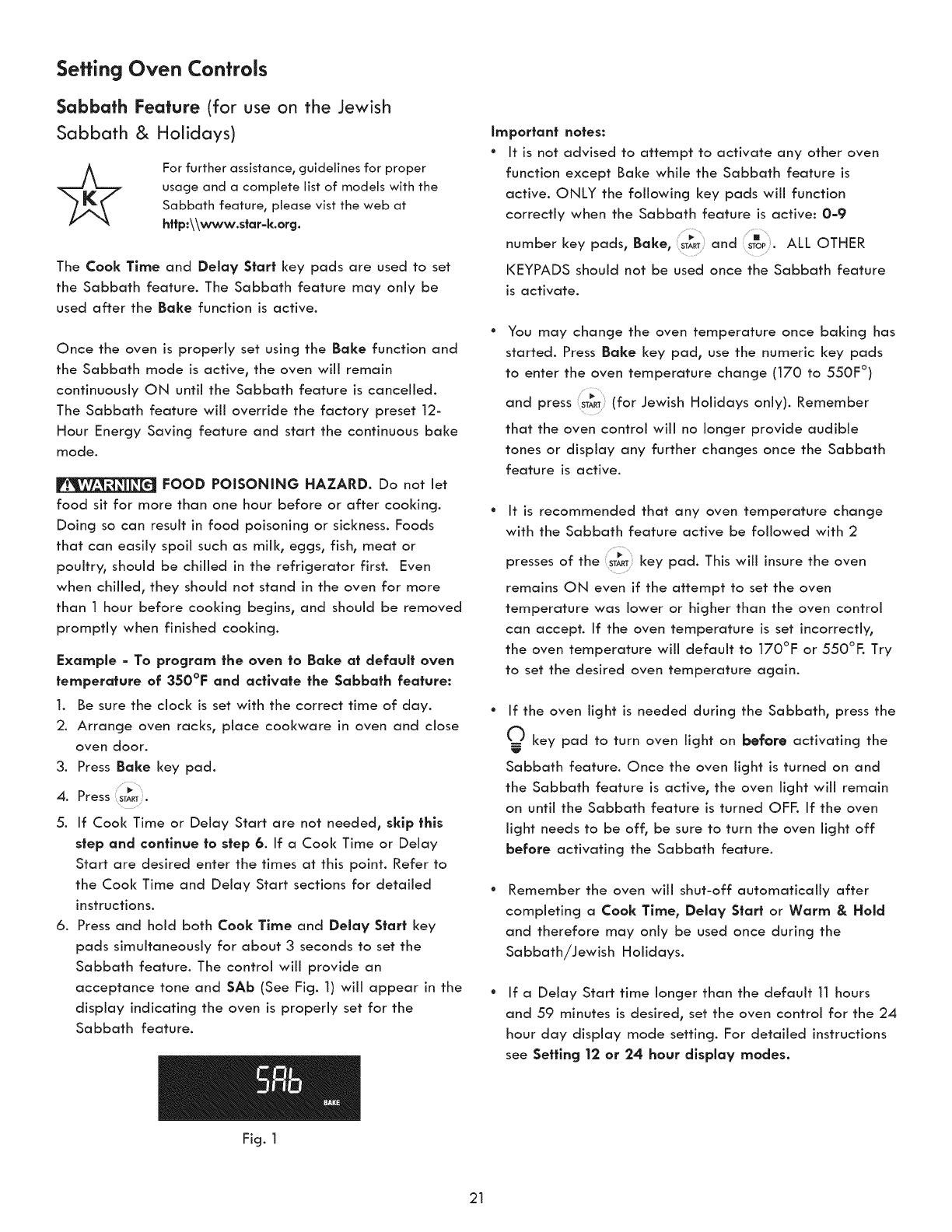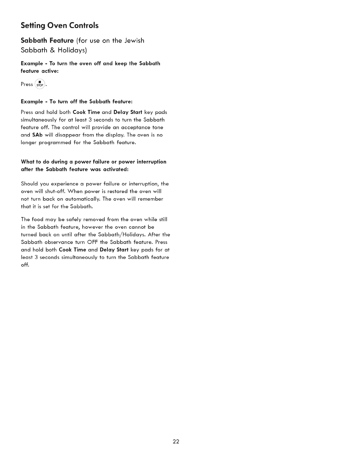 Sabbath Oven Controls ................................................. 21-22