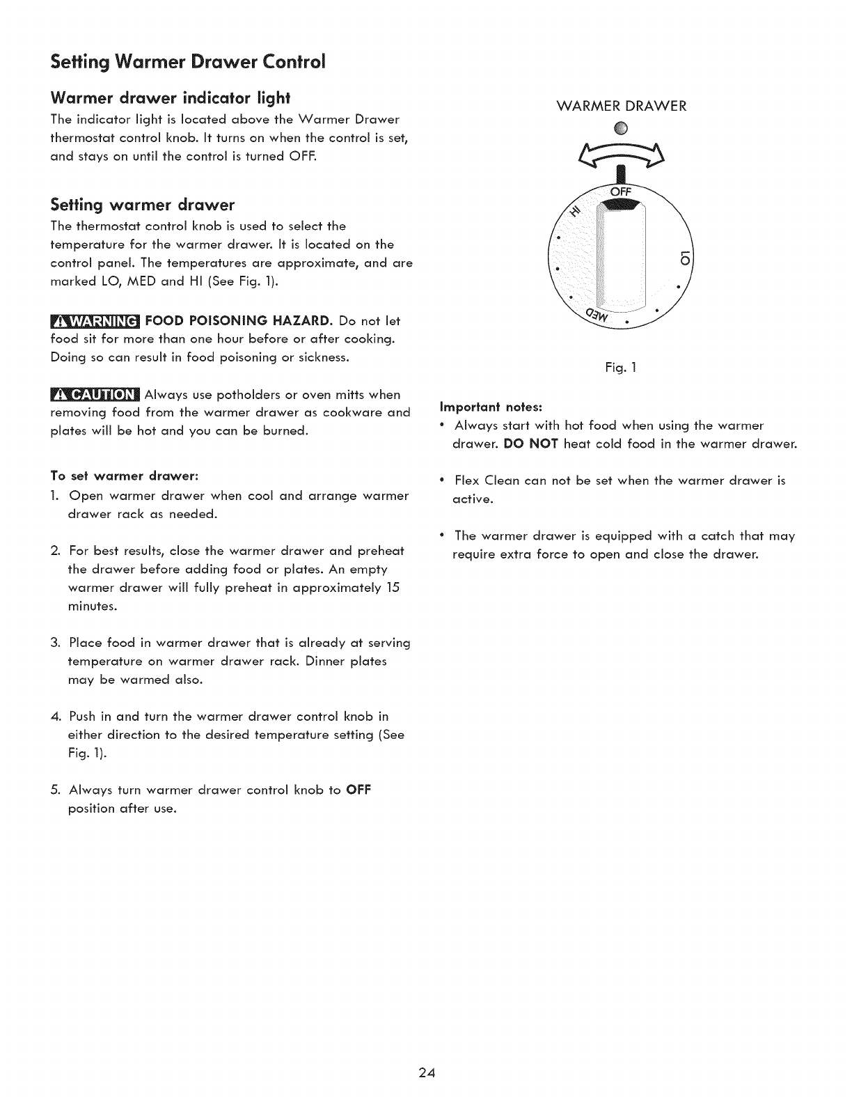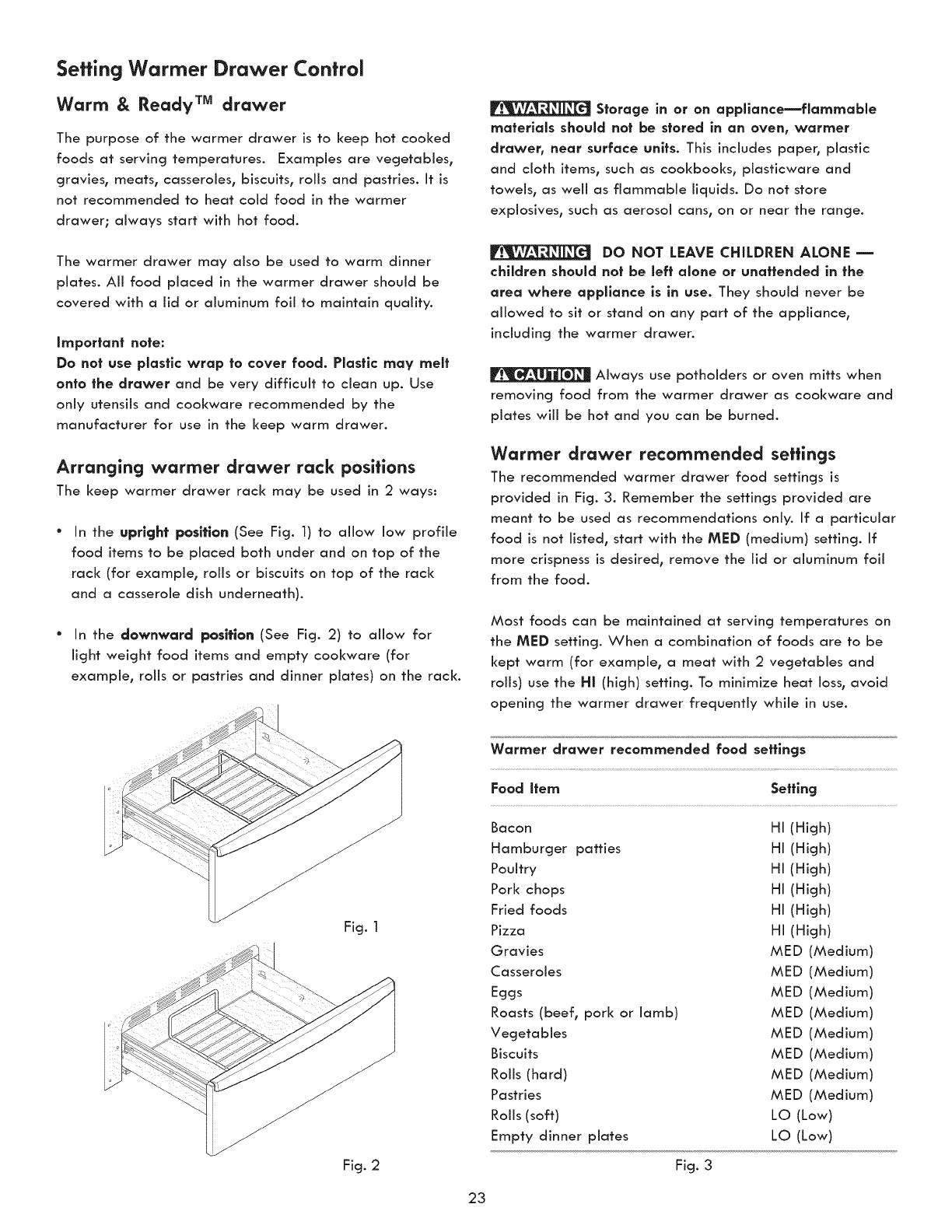 Warmer Drawer ............................................................... 23-24