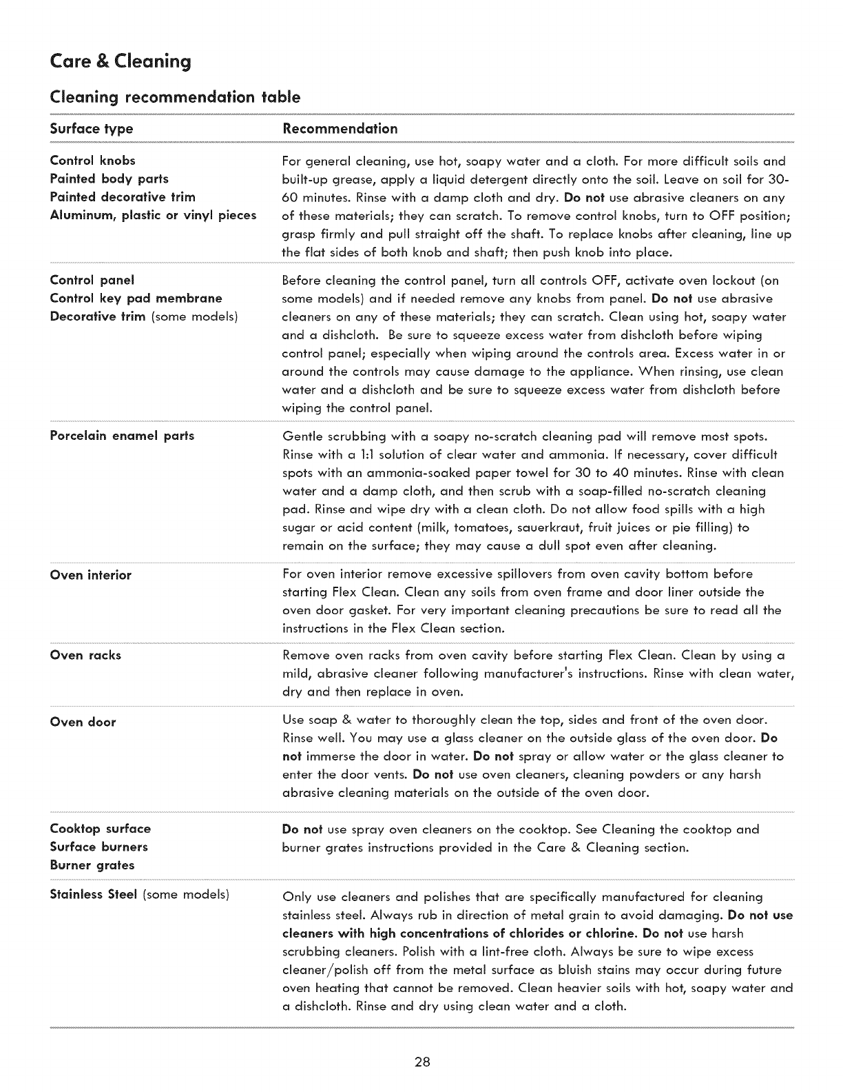 Care & Cleaning ................................................................ 28-31