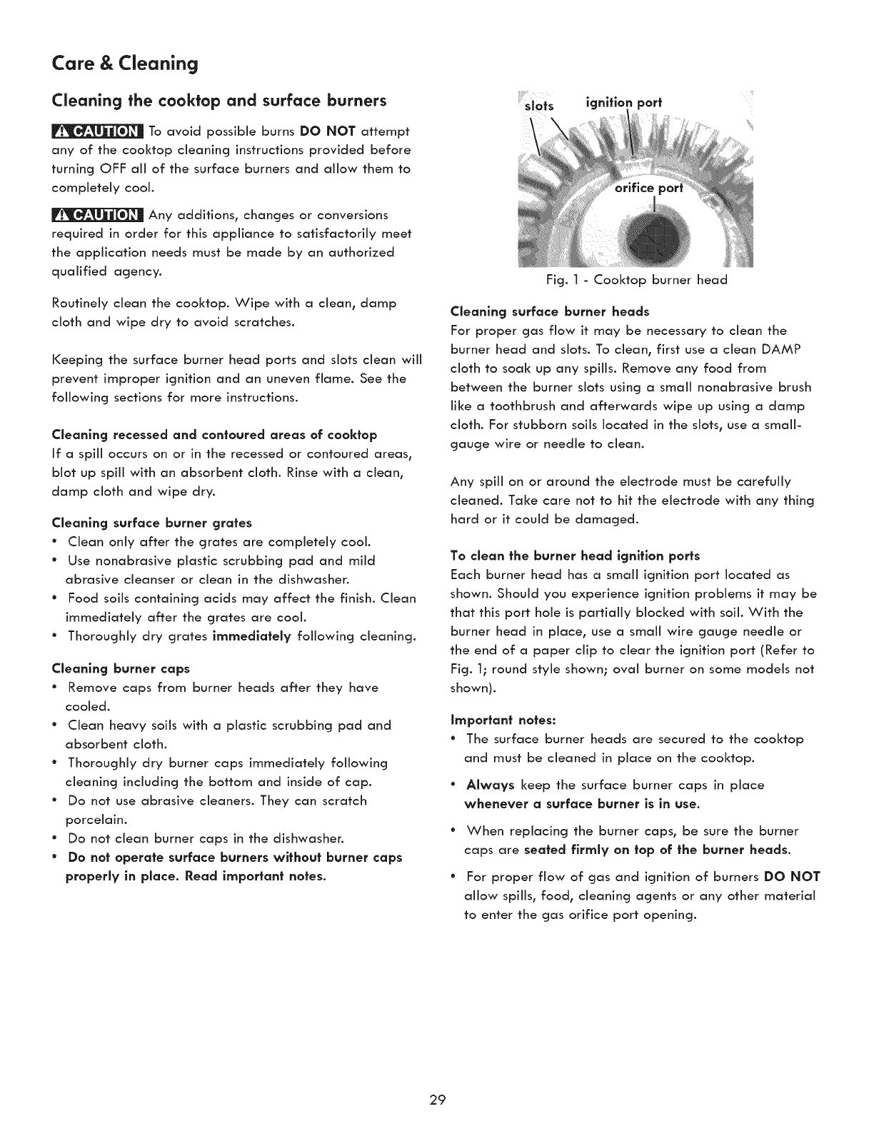 Cleaning the cooktop and surface burners .................... 29