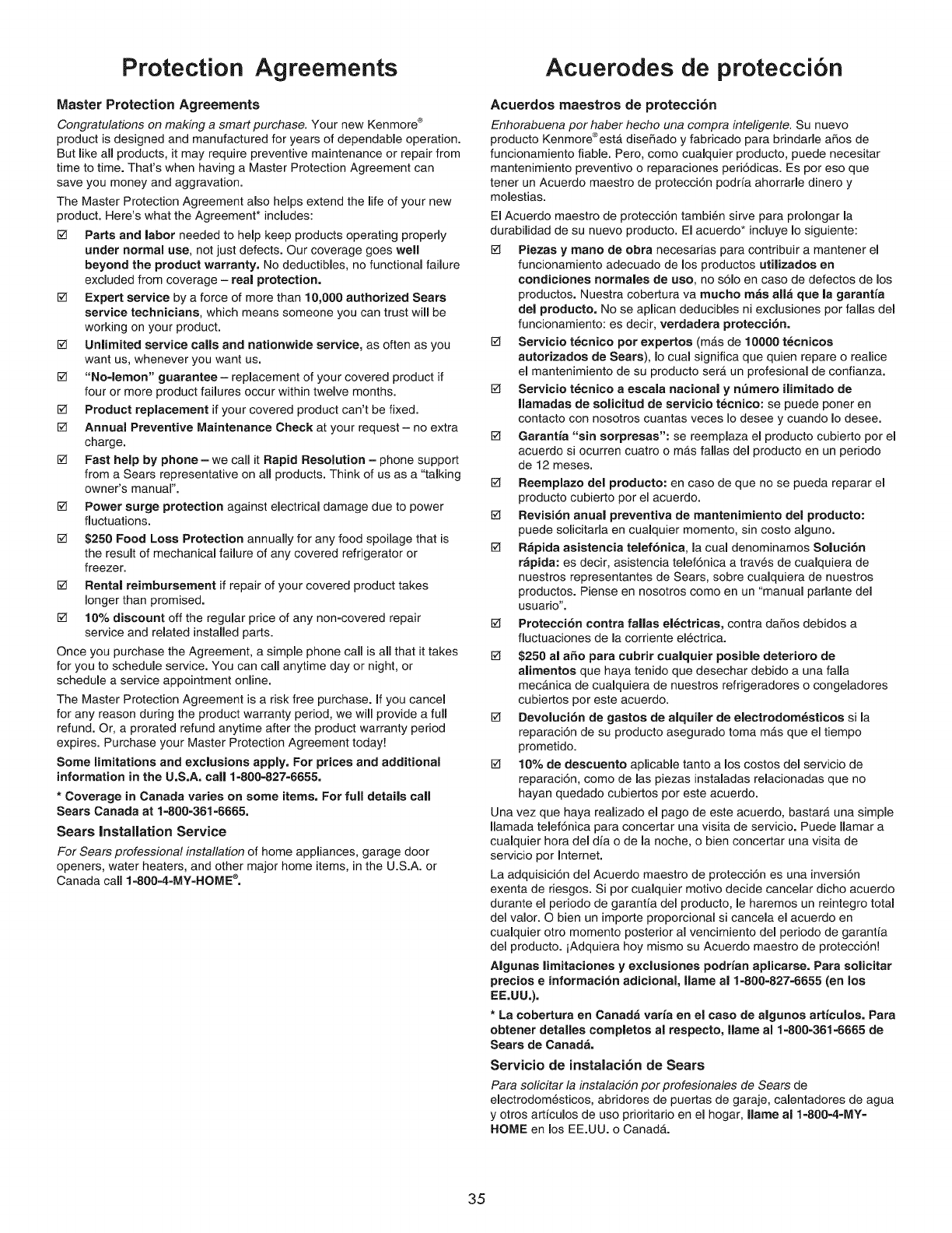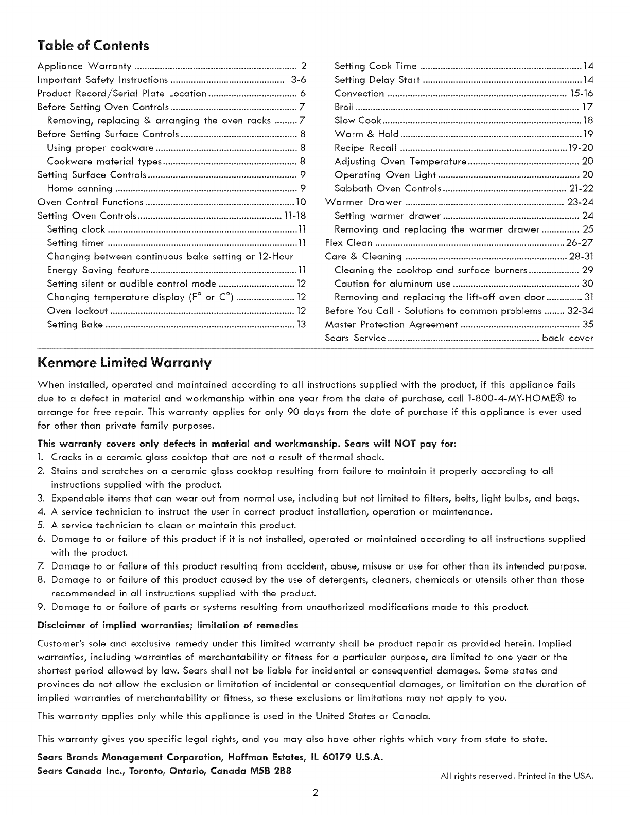 Sears Service ............................................................ back cover