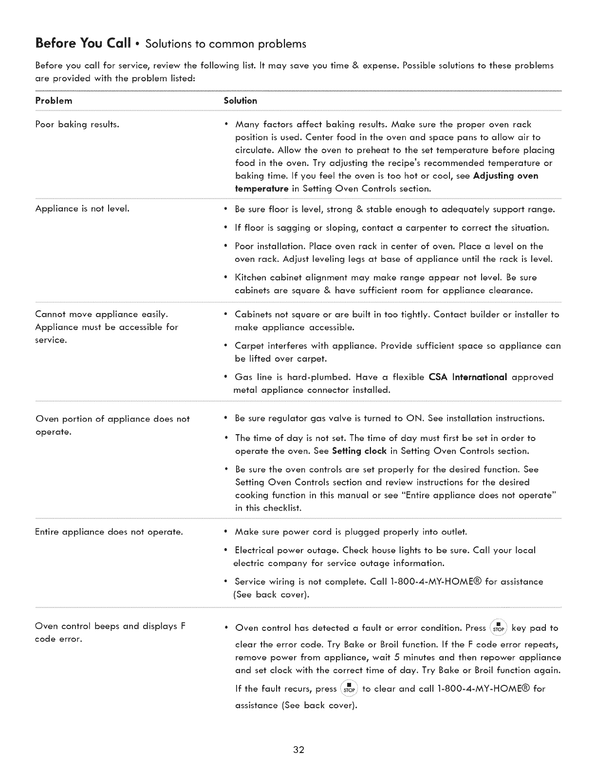 Before You Call - Solutions to common problems ........ 32-34