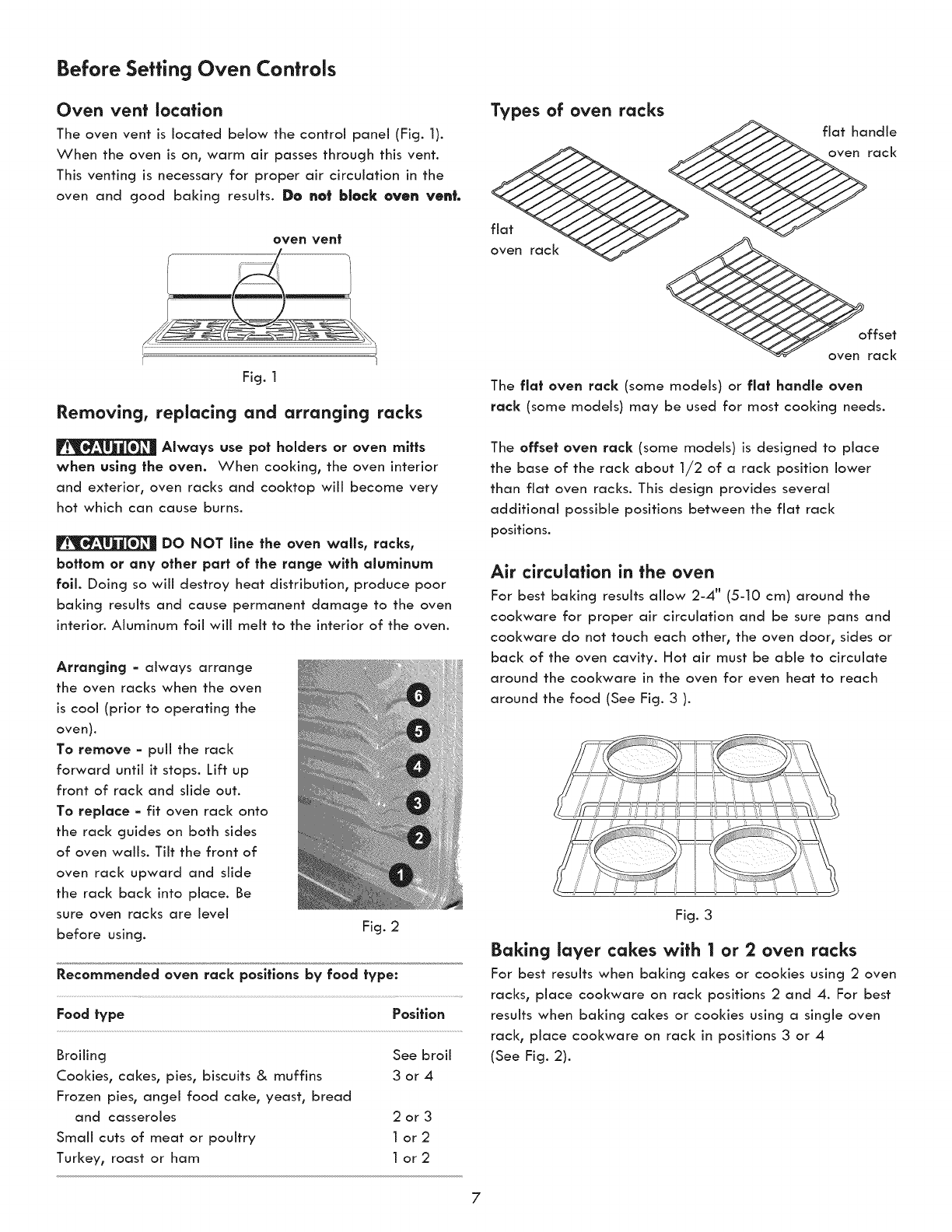 Removing, replacing & arranging the oven racks ......... 7