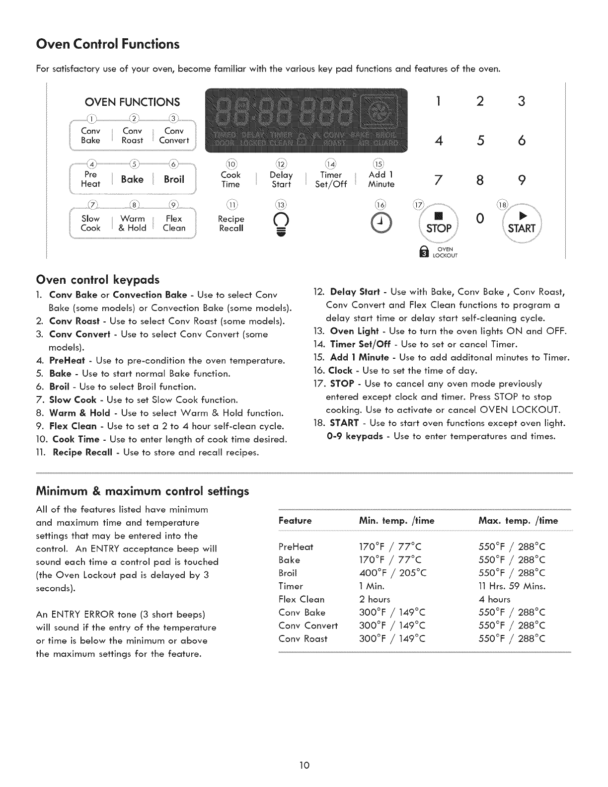 Oven Control Functions ........................................................... 10