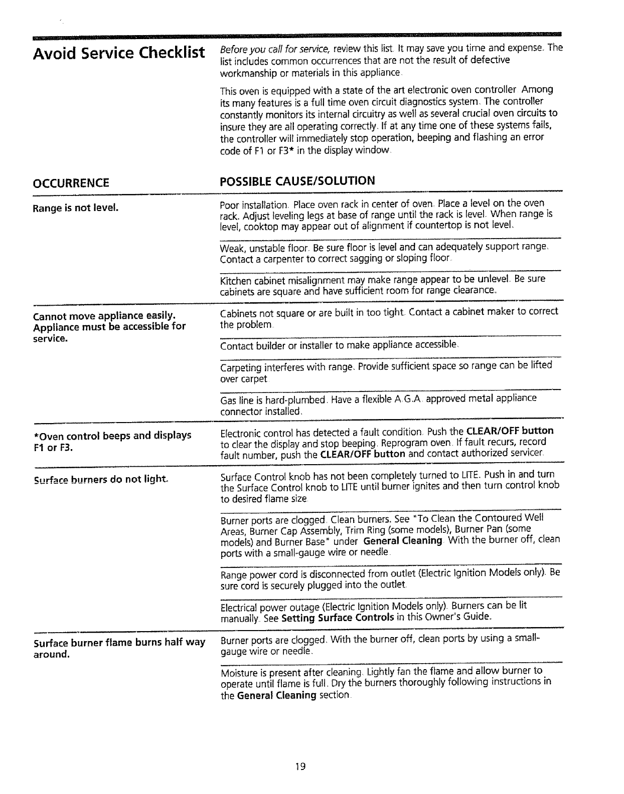 Avoid Service Checklist ........................................................ 19-20