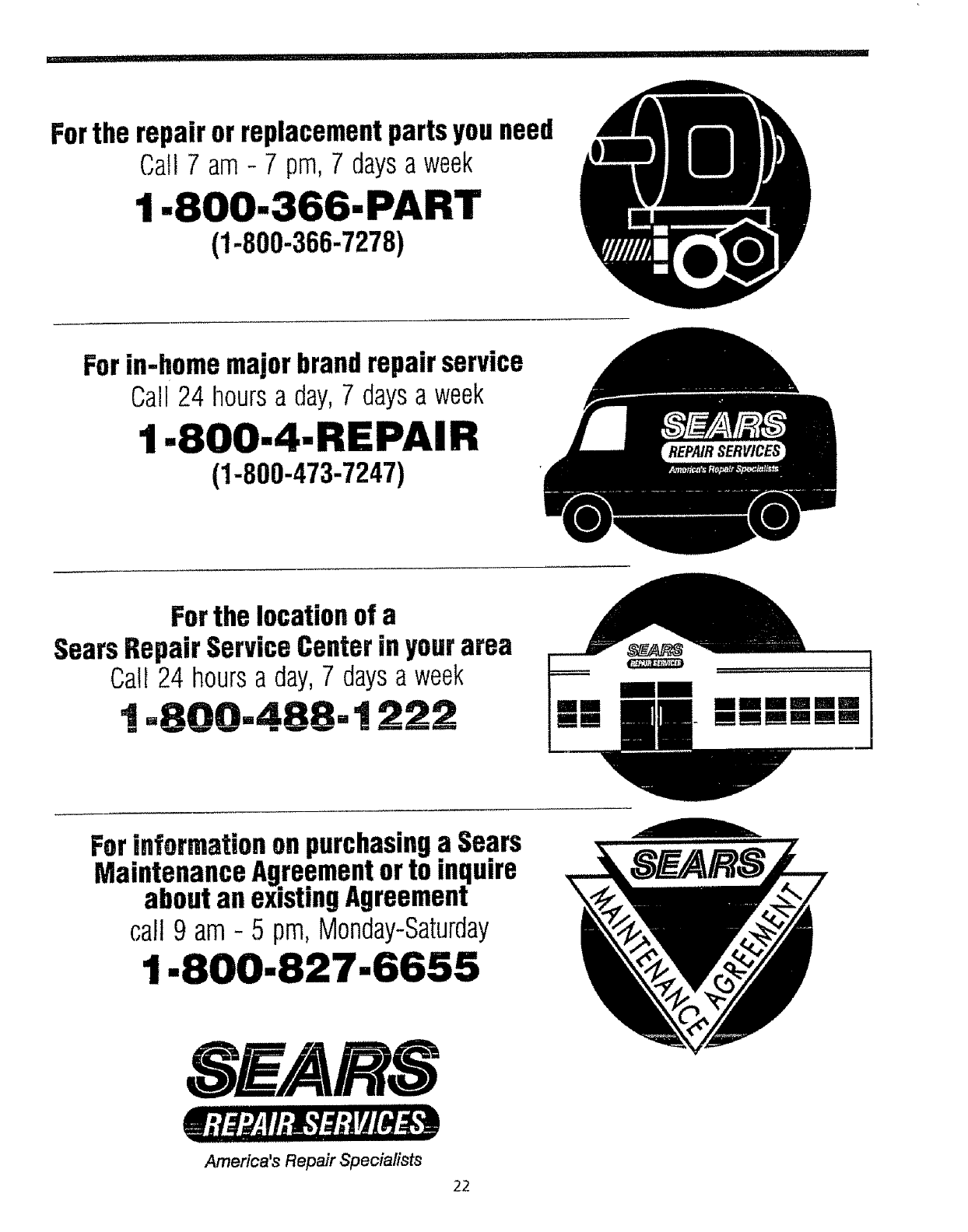 Sears Service .............................................................................. 22