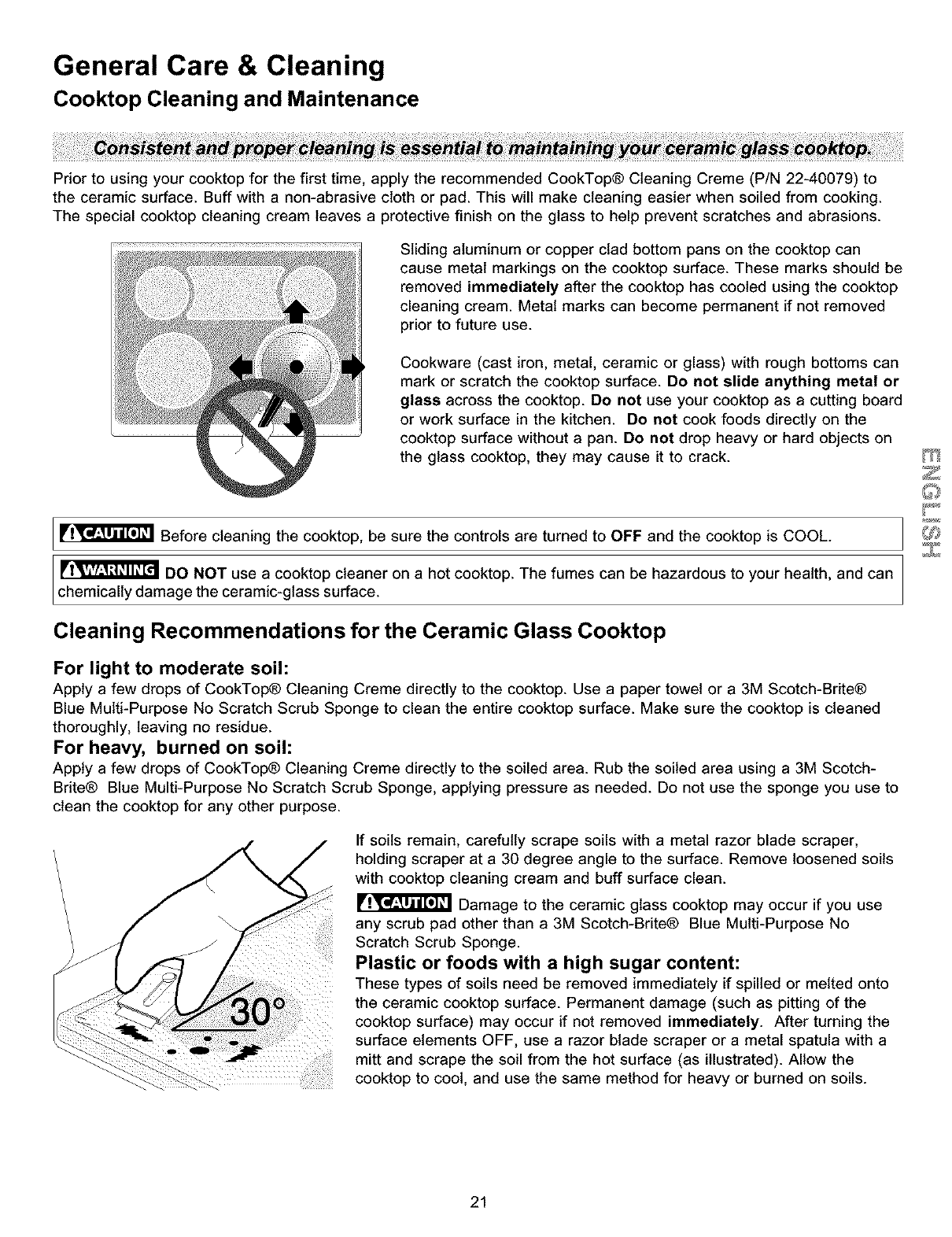 (Ceramic-Glass cooktop models only). Cleaning and Maintenance" in the General Care & Cleaning section.