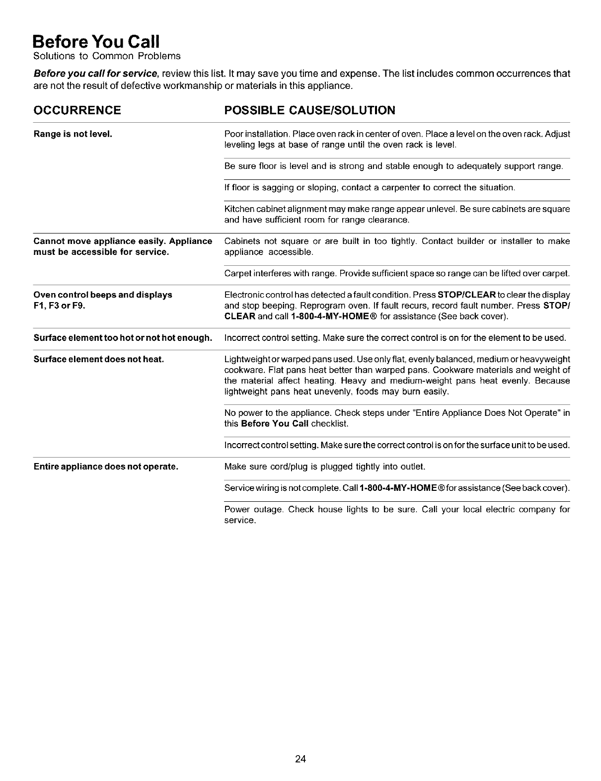Service wiring is not complete. Call I*800-4-MY*HOM E® for assistance (See back cover).