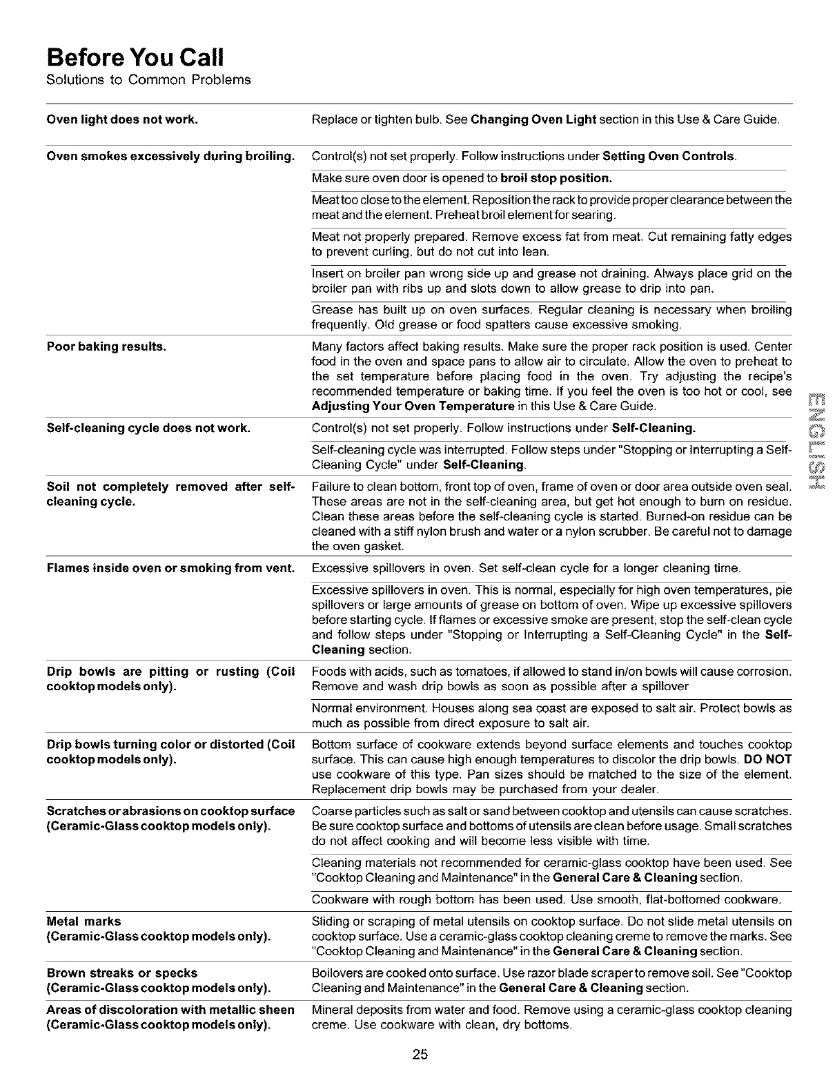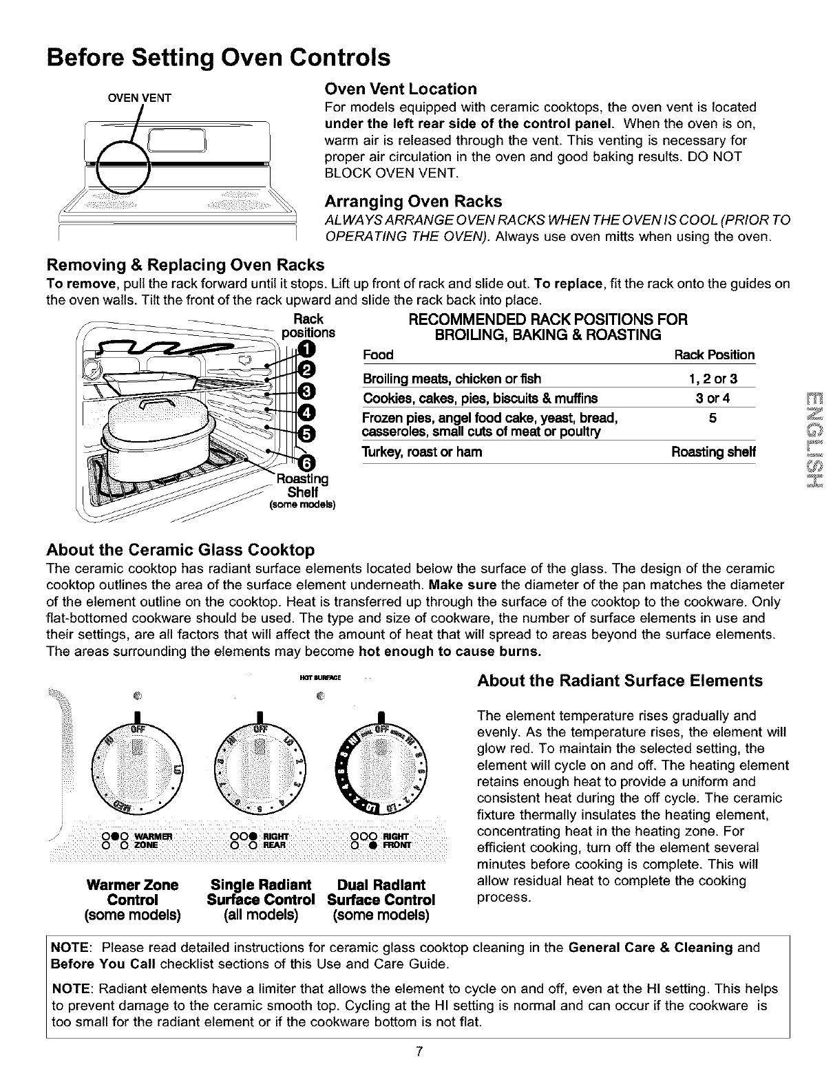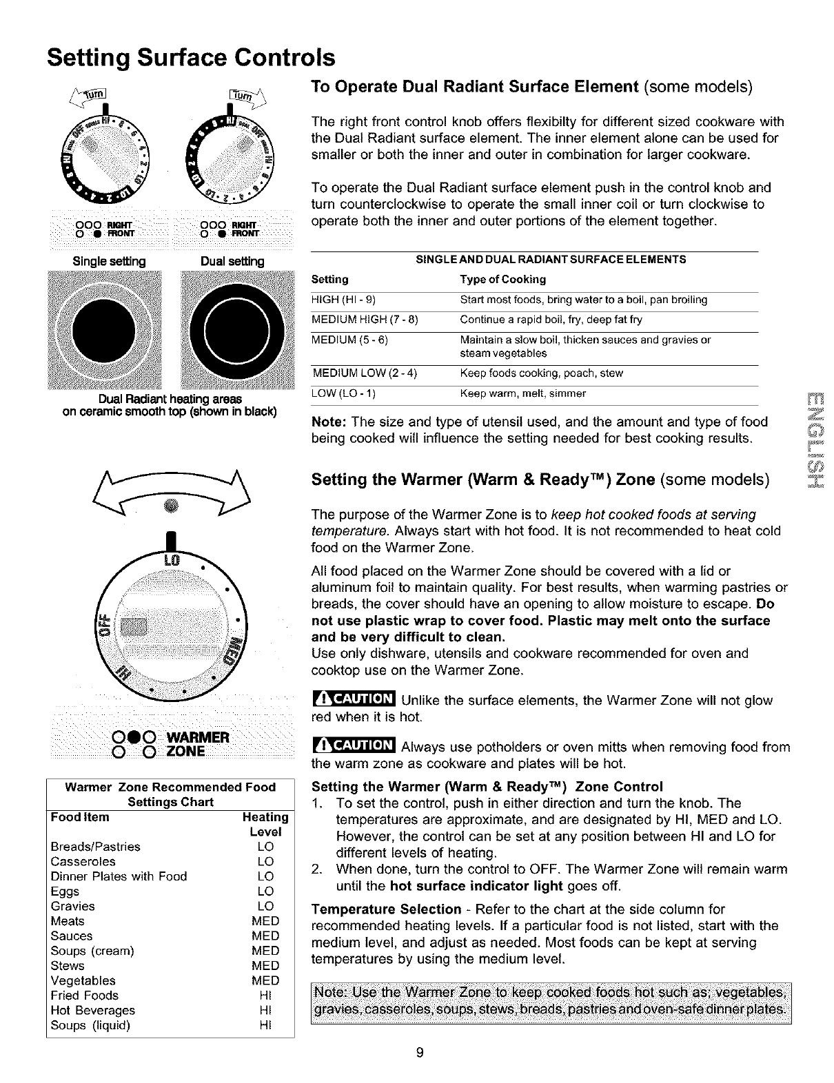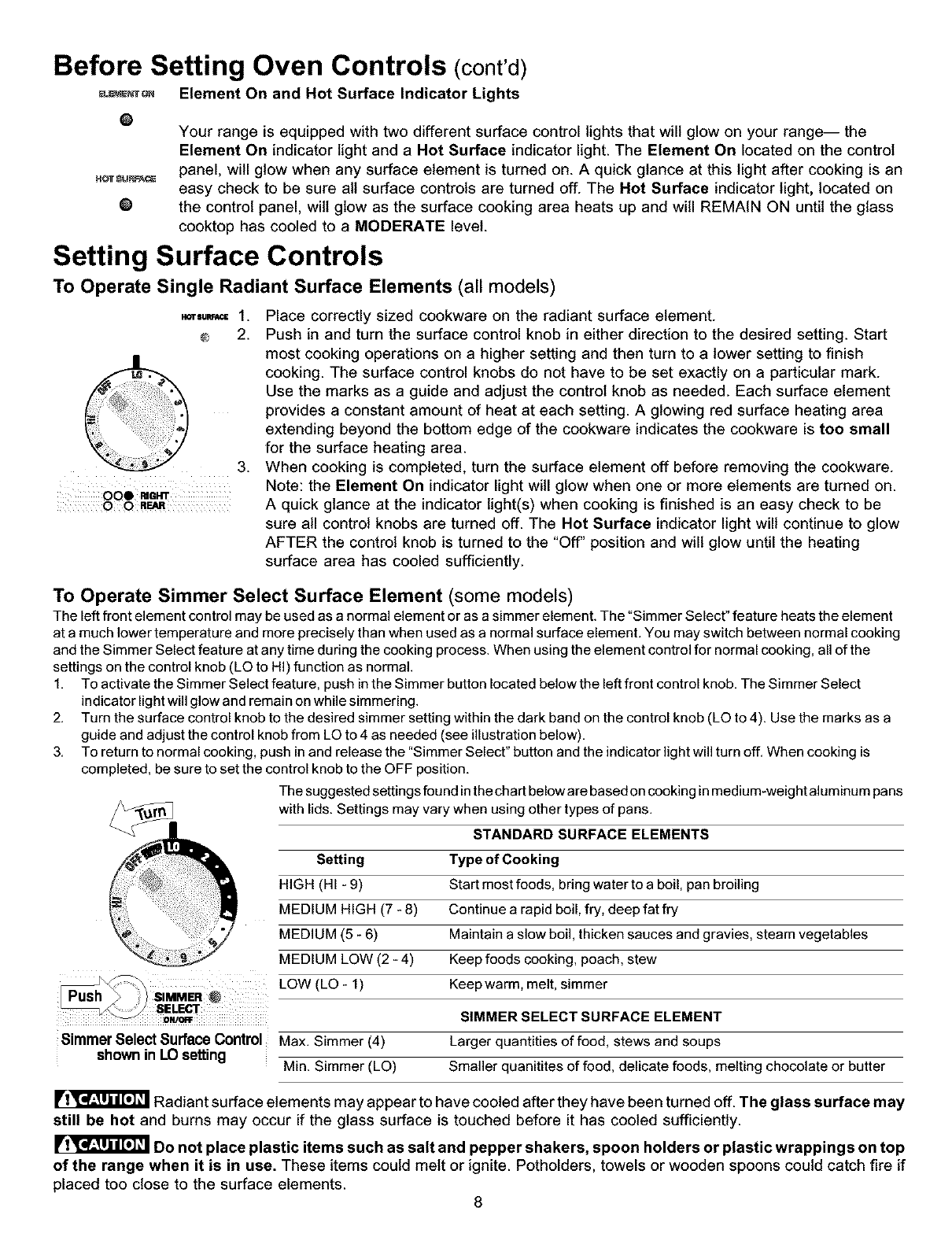 (Ceramic-Glass cooktop models only), creme. Use cookware with clean, dry bottoms.