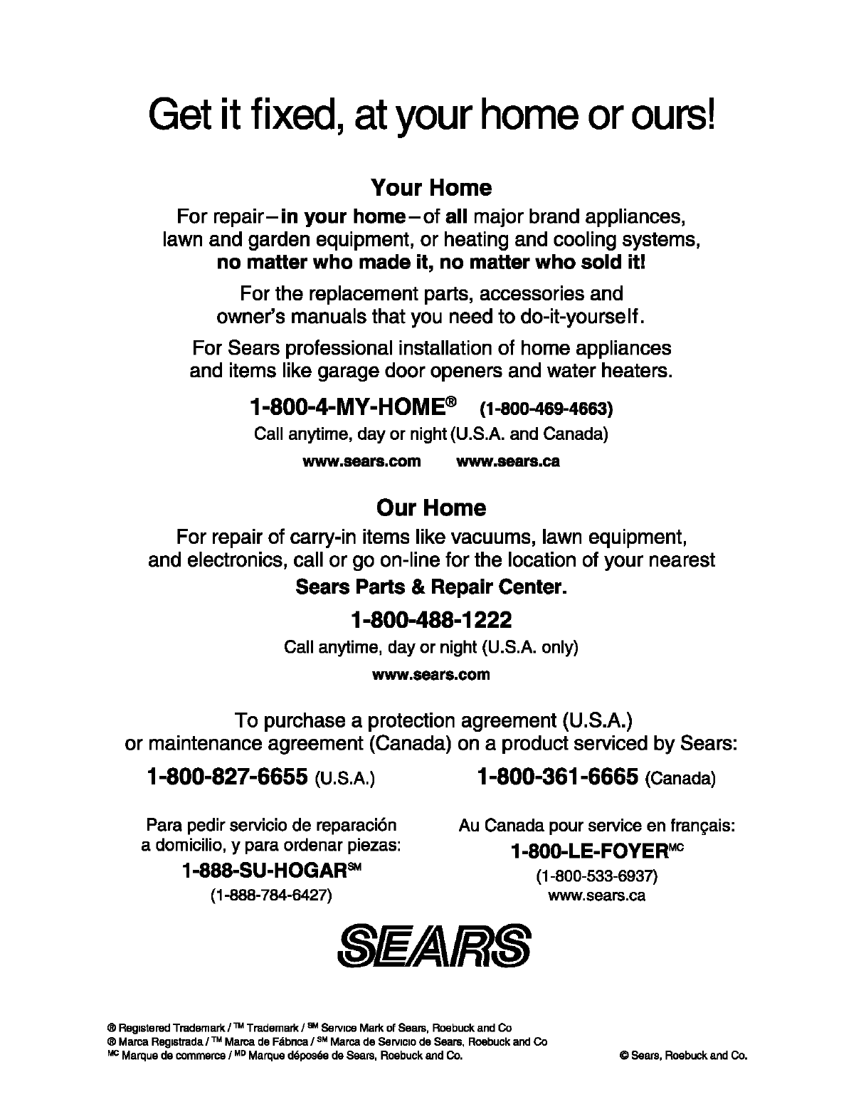 ®Registered Trademark /Trademark /Service Mark of Sears, Roebuck and Co