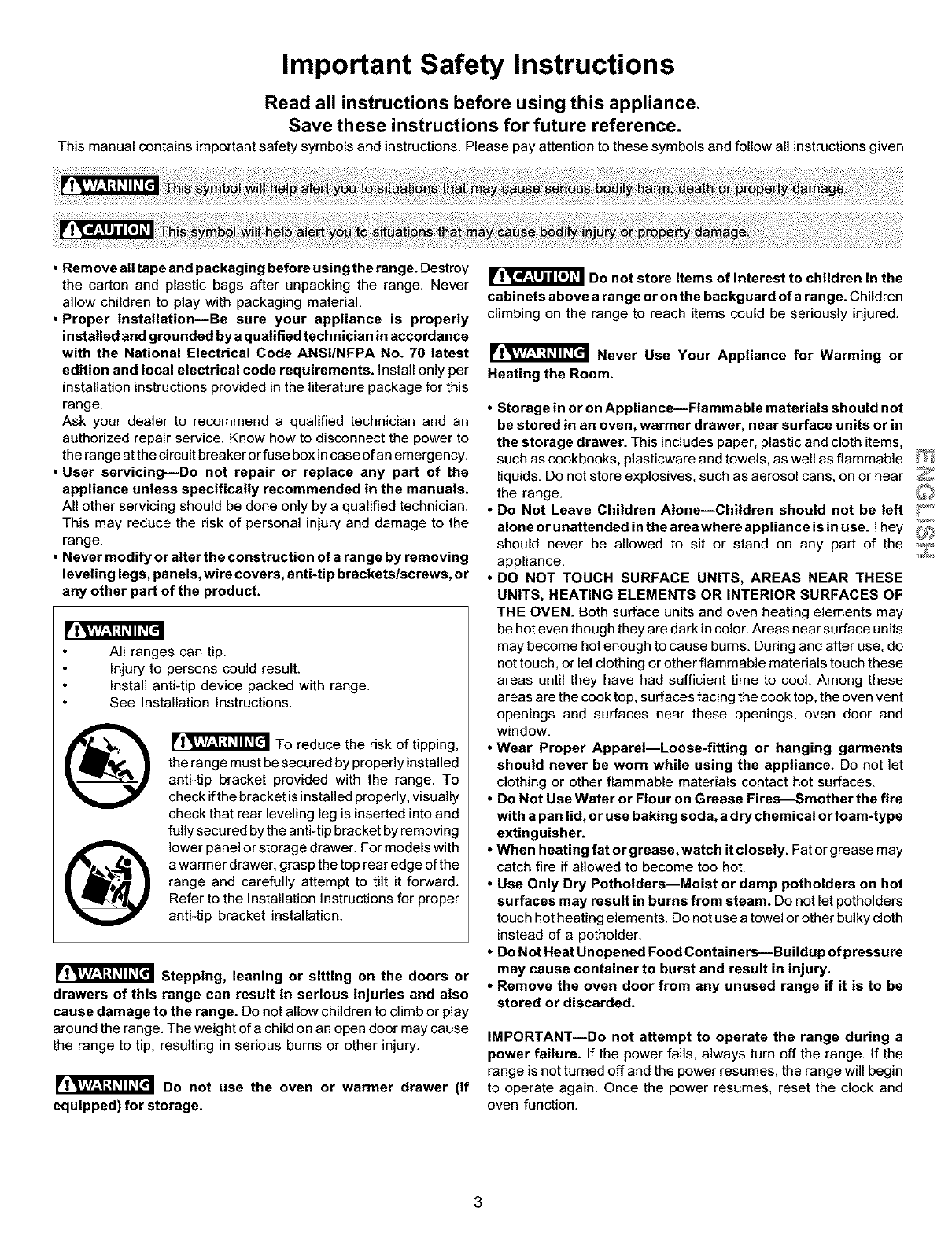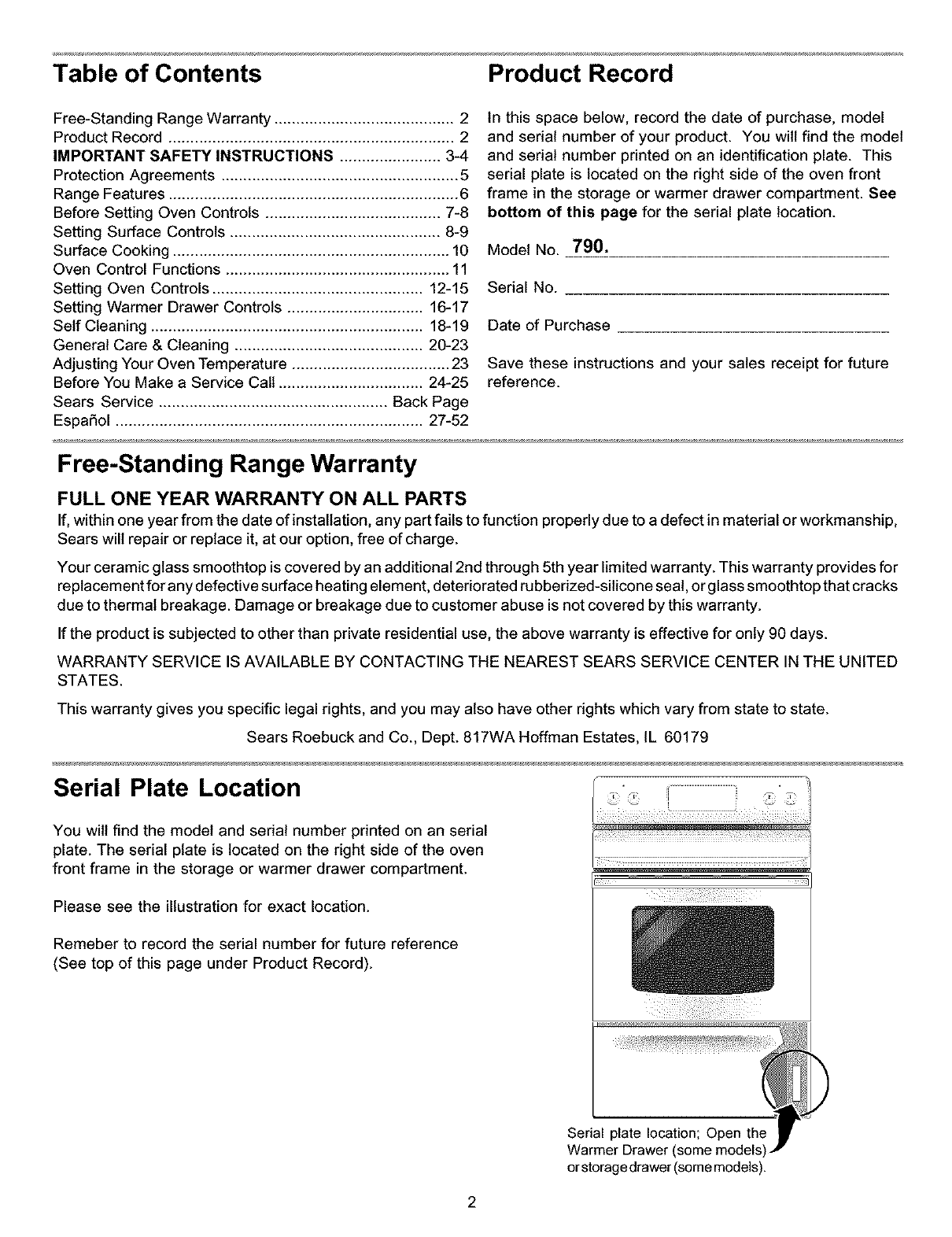 Kenmore 79092320300 User Manual ELECTRIC RANGE Manuals And Guides L0305046