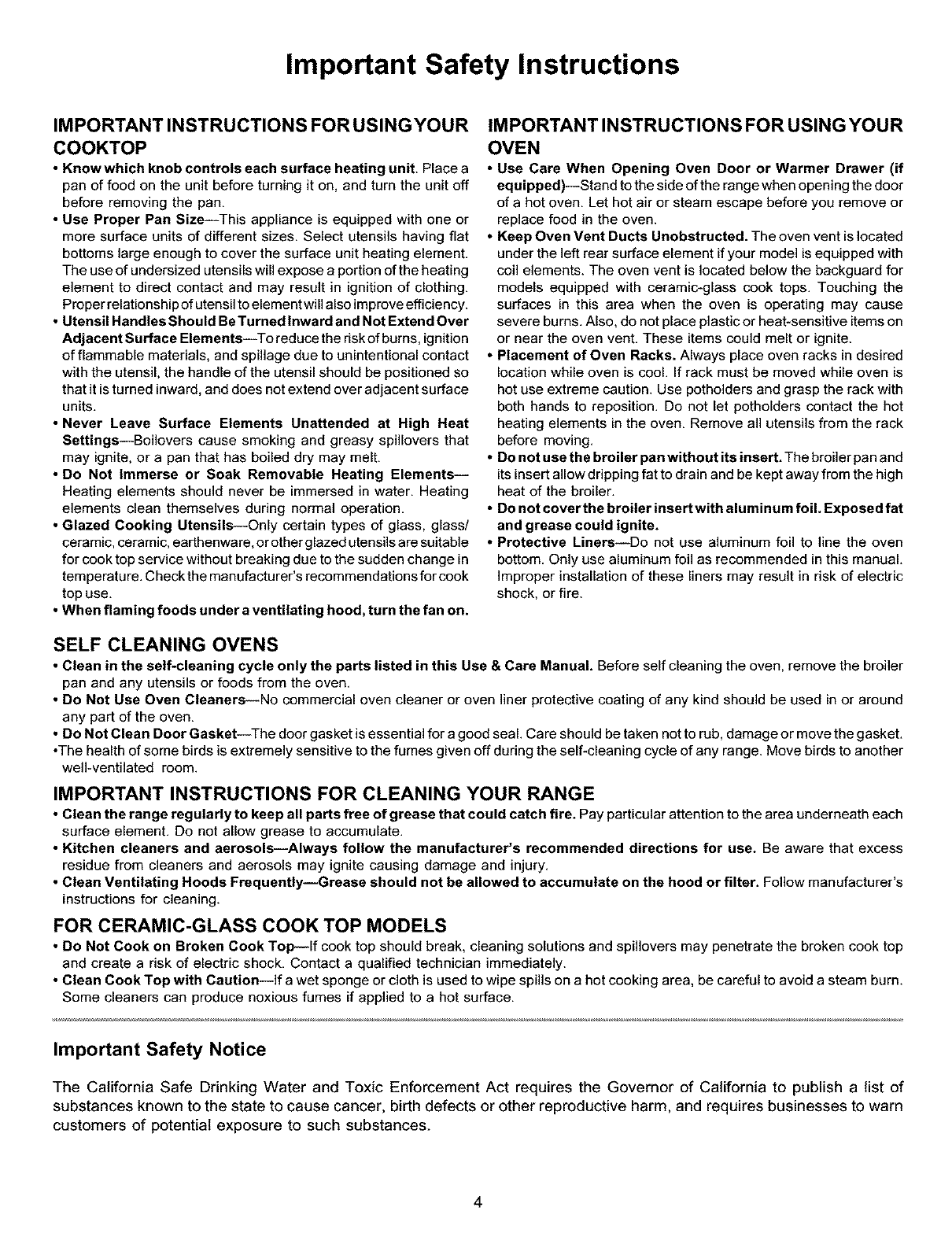 (Ceramic-Glass cooktop models only). Be sure cooktop surface and bottoms of utensils are clean before usage. Small scratches