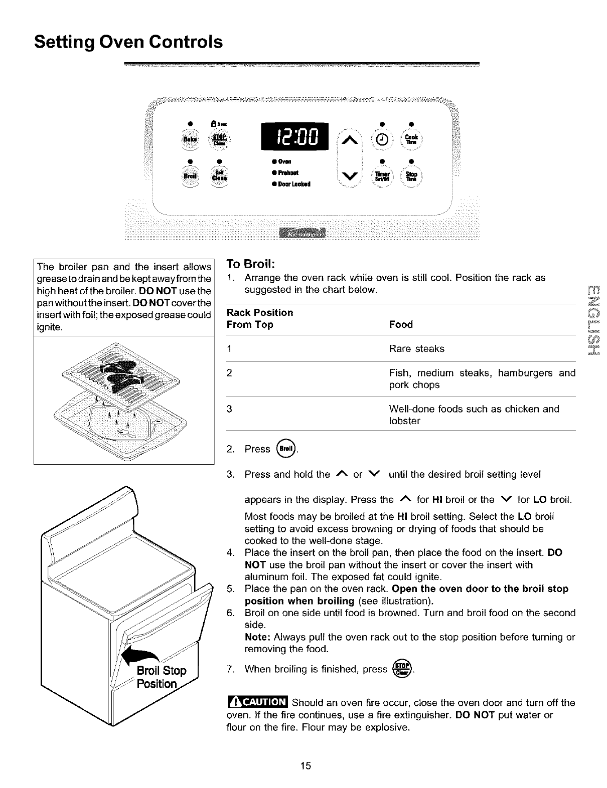 Oven smokes excessively during broiling. Control(s) not set properly. Follow instructions under Setting Oven Controls,