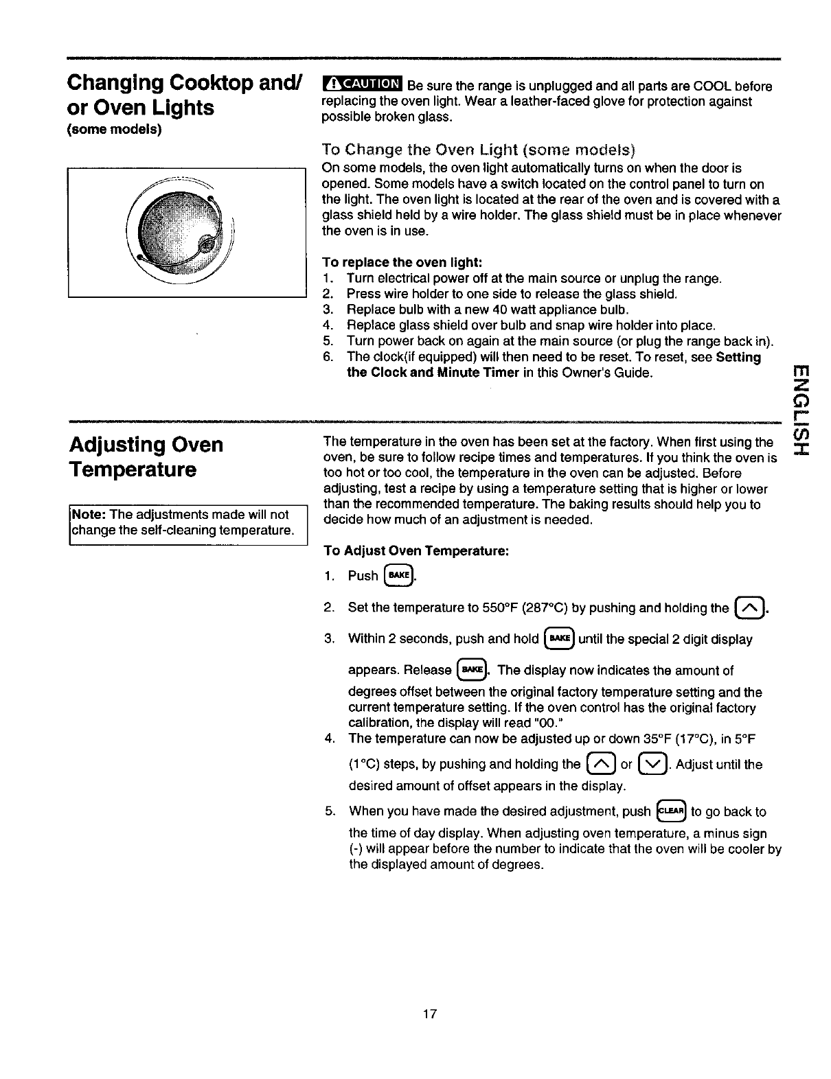 Cooktop and/or oven light (some Replace or tighten bulb. See Changing Cooktop and/or Oven Lights (some