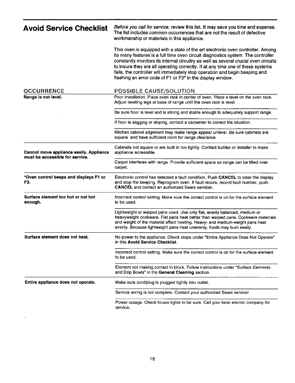 *Oven control beeps and displays F1 or Electronic control has detected a fault condition. Push CANCEL to clear the display