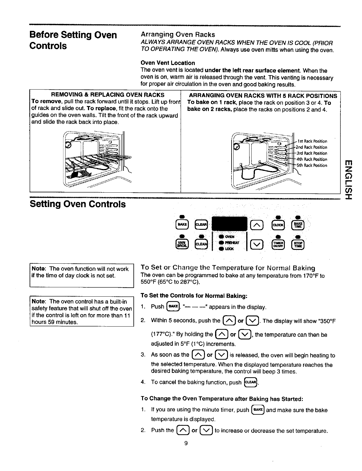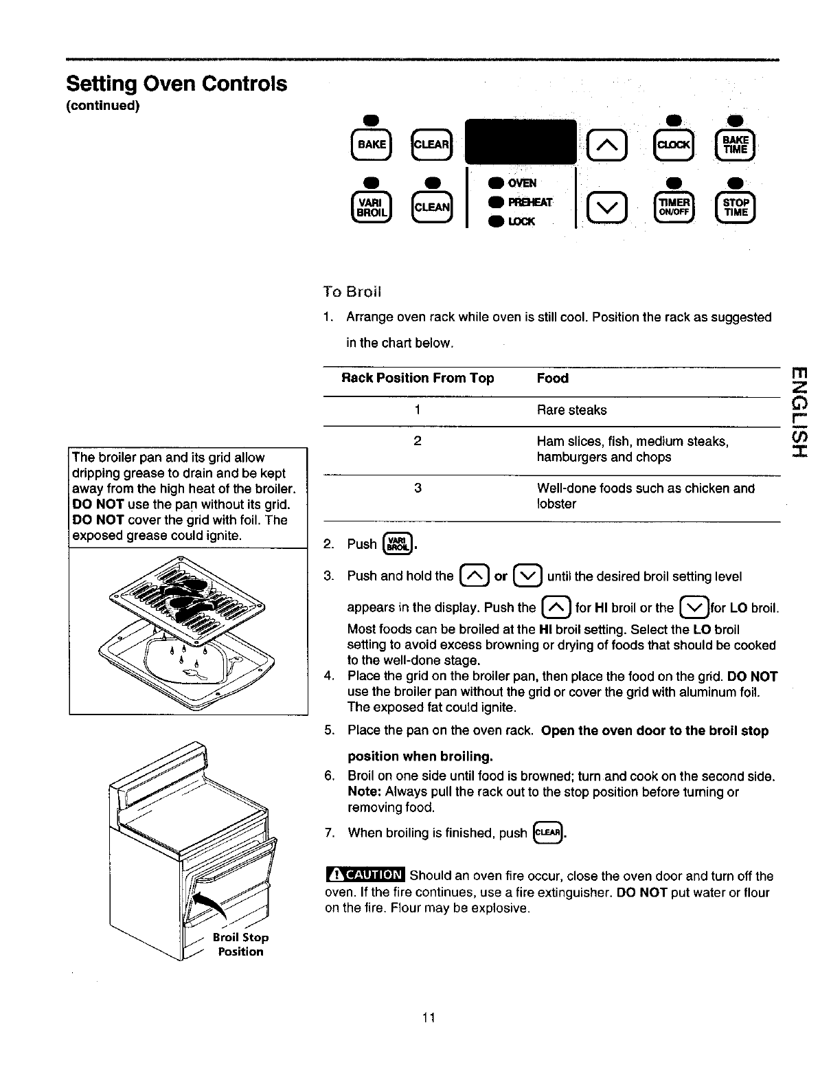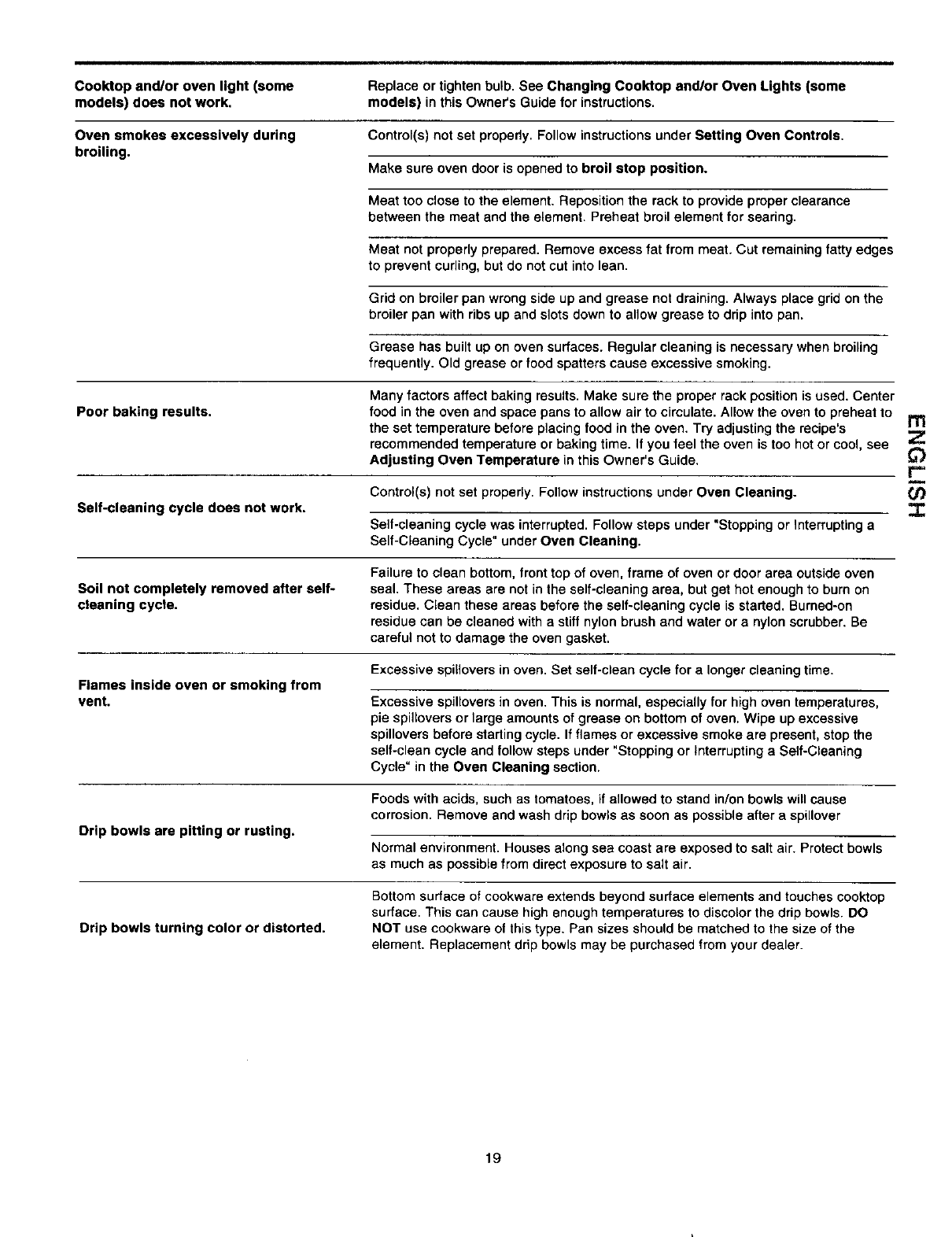 Oven smokes excessively during Control(s) not set properly, Fallow instructions under Setting Oven Controls,