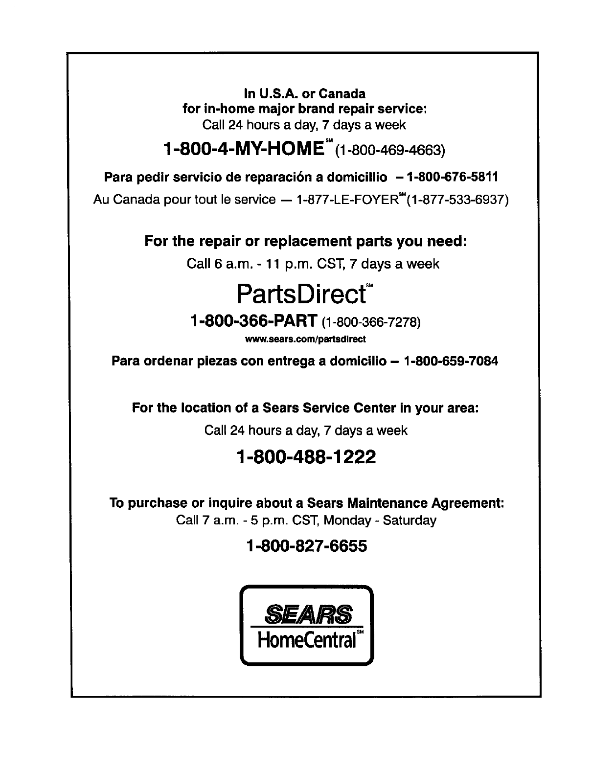 Contact your Sears Sales Associate or Local Sears Service Center today and purchase a Sears Maintenance