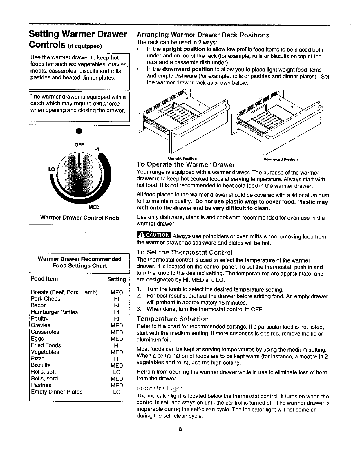 Setting Warmer Drawer Controls (if equipped) ................. 8