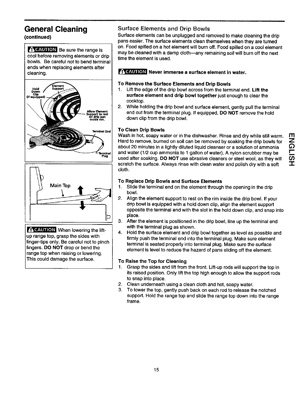 corrosion. Remove and wash drip bowls as soon as possible after a spillover