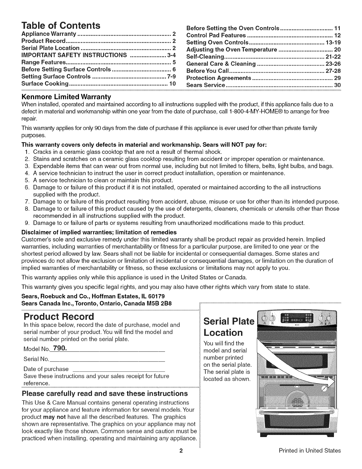 Appliance Warranty ......................................................... 2