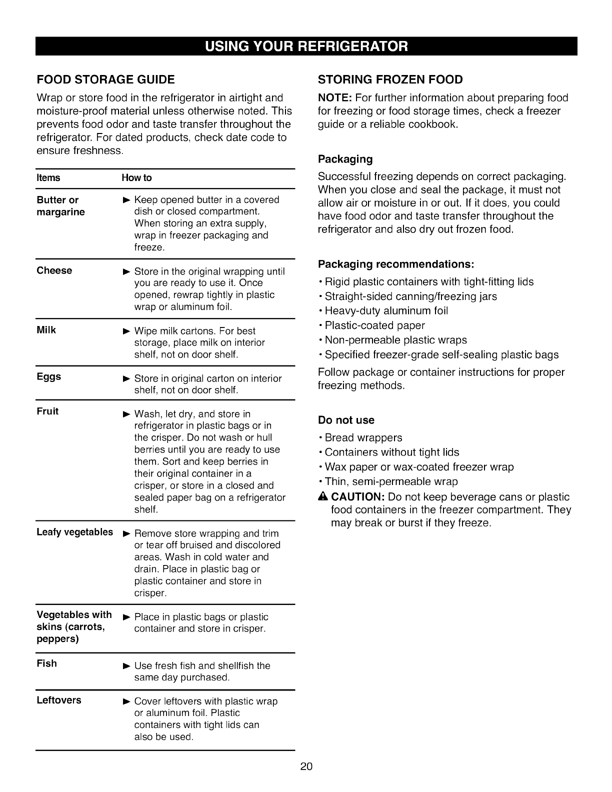 Storing Frozen Food 20-21