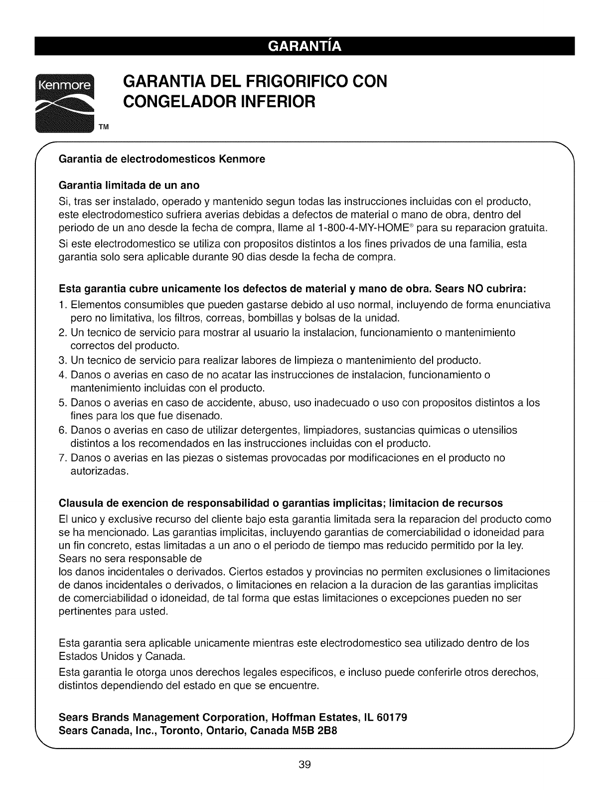 ® Marca Registrada /TMMarca de Fabrica de KCD IP, LLC en Estados Unidos, o Sears Brands, LLC in otros paises