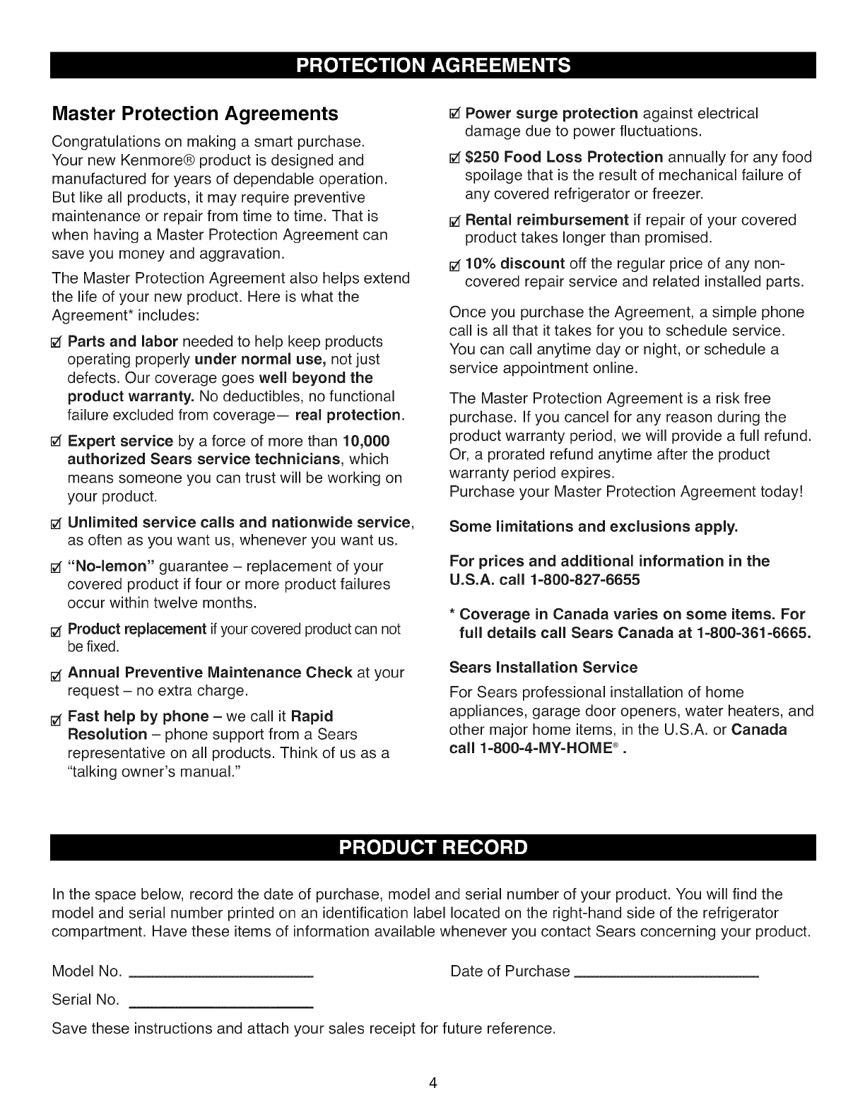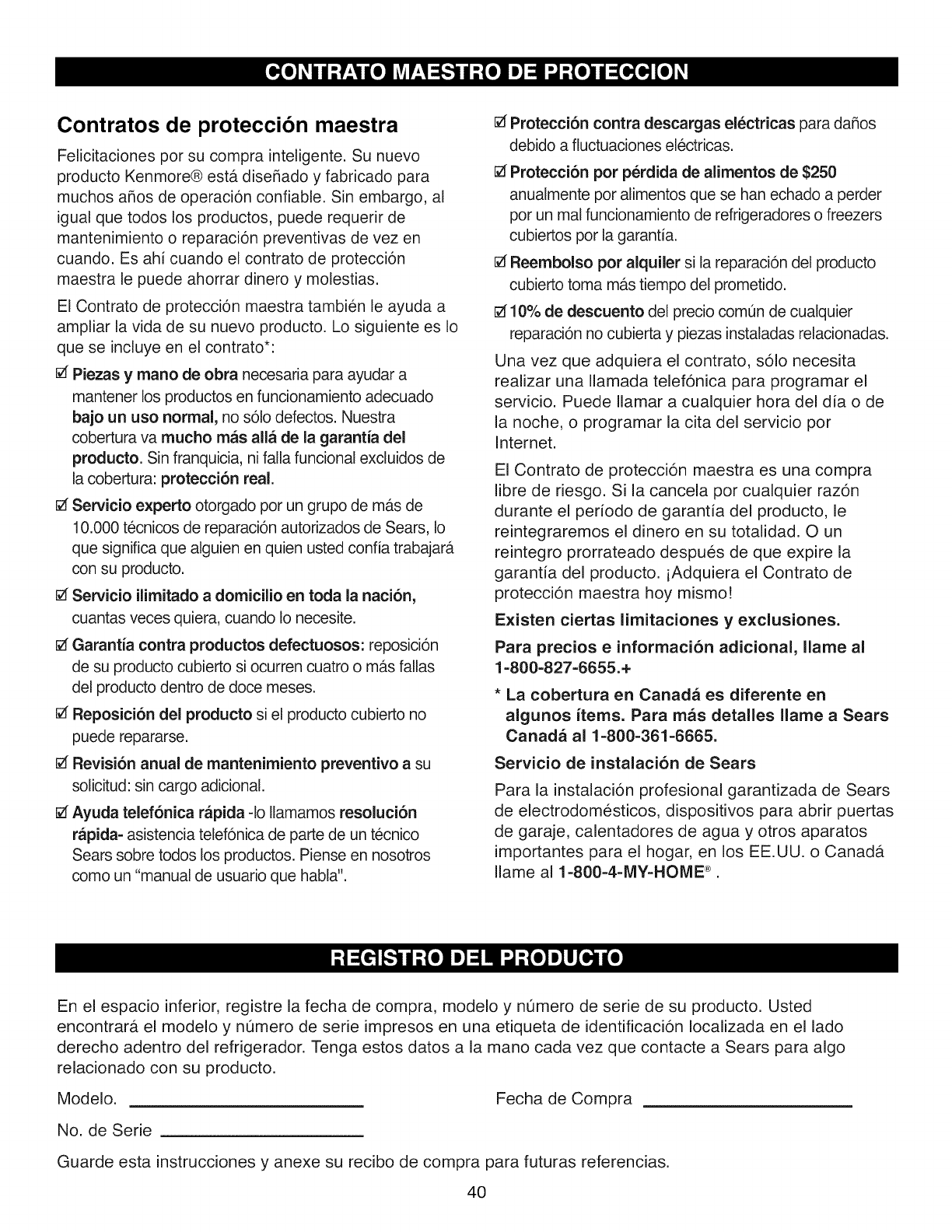 purchase, call 1-800-4-MY-HOME ®to arrange for free repair.
