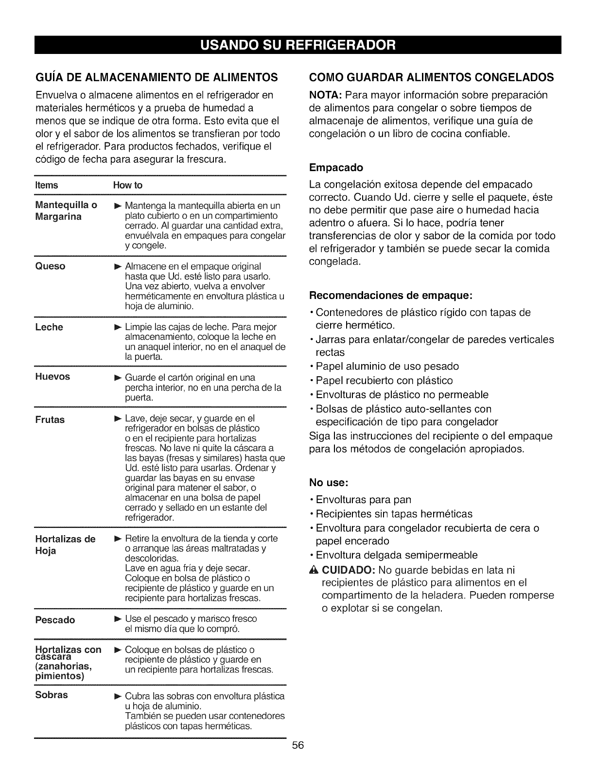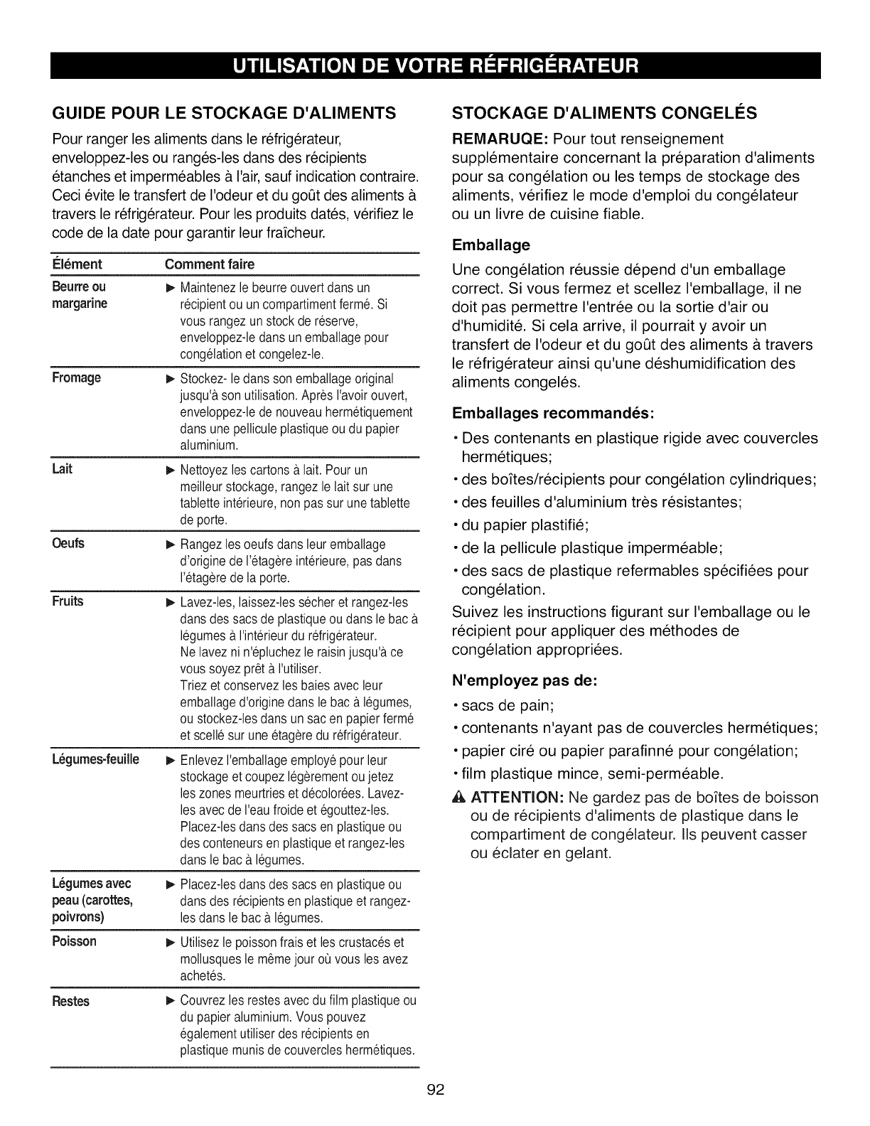 LE STOCKAGE D'ALIMENTS & la page 92.