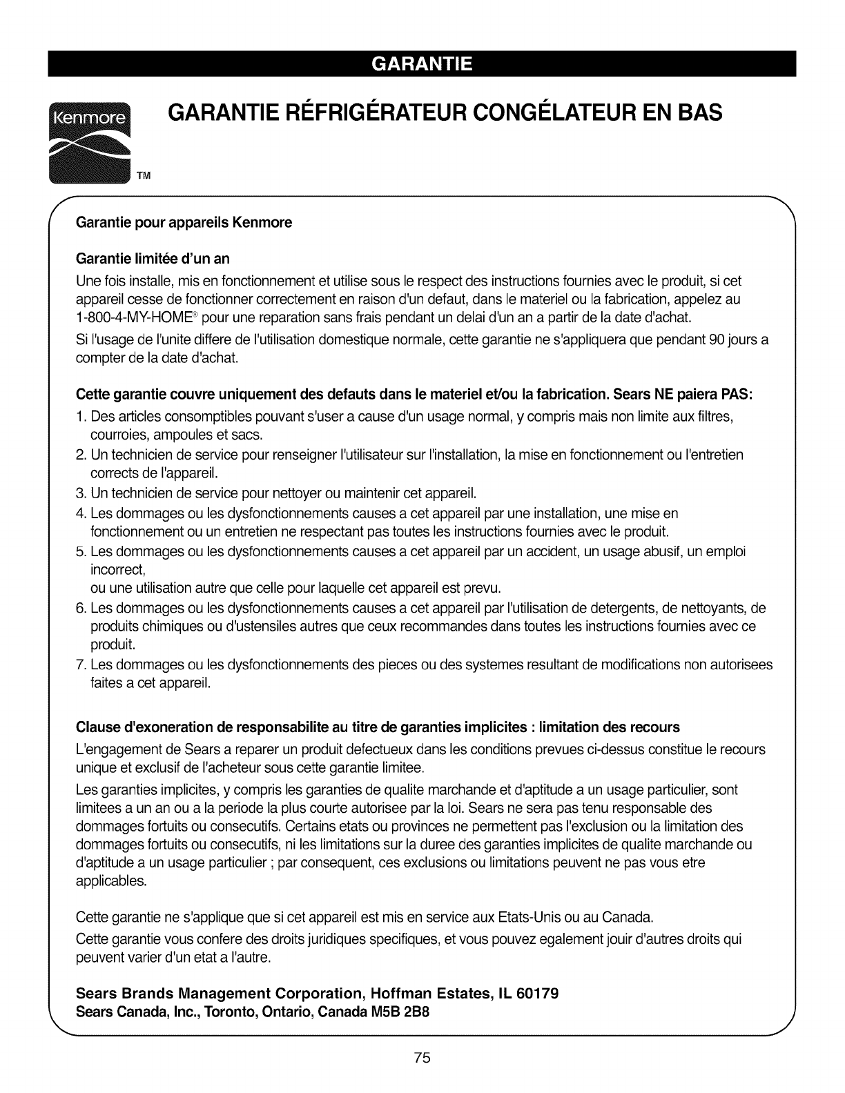 Kenmore Appliance Warranty