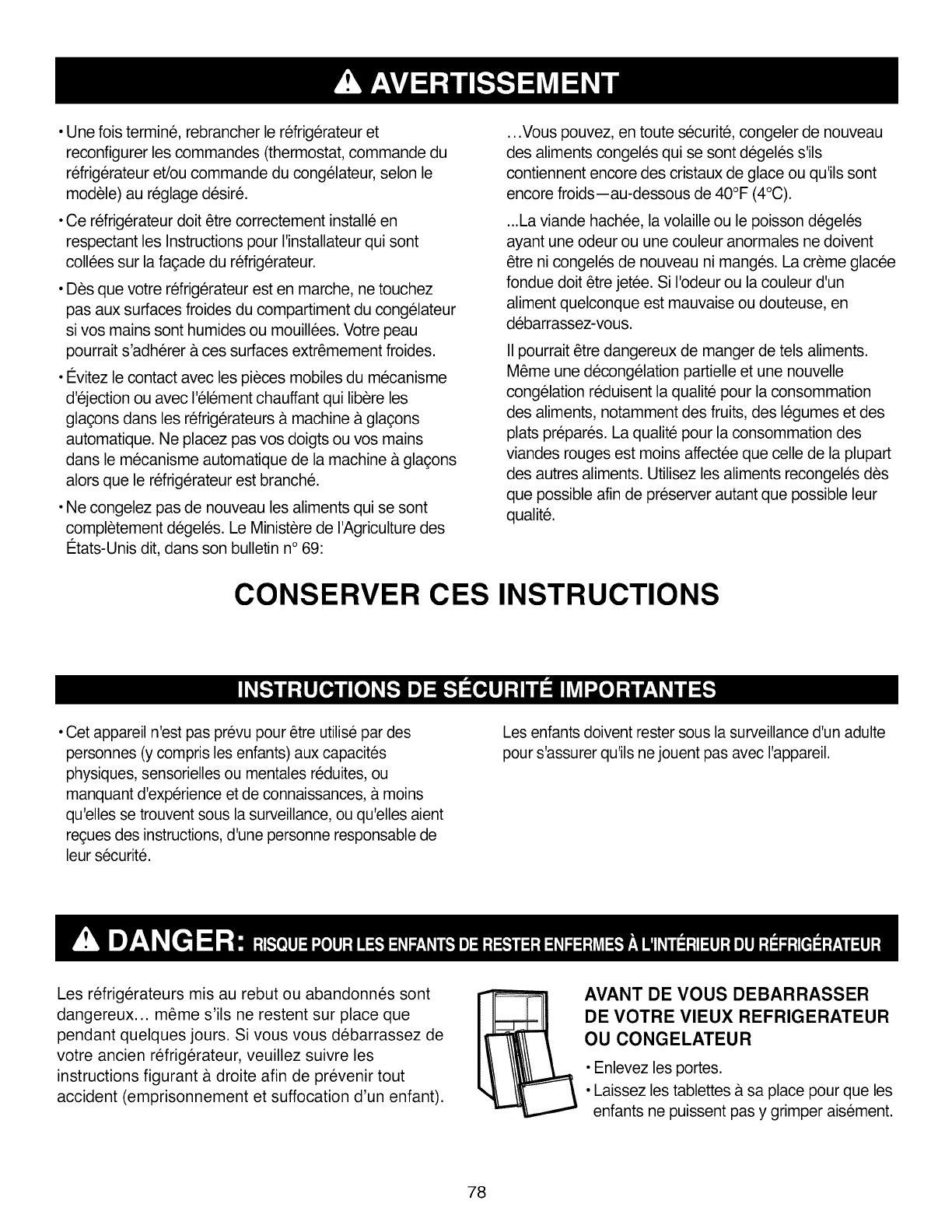aliments peuvent geler. Le refrig6rateur ne doit pas fonctionner dans