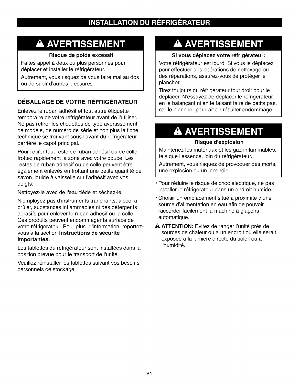 Contr61ez et deplacez le cas ech6ant le refrig@ateur pour qu'il