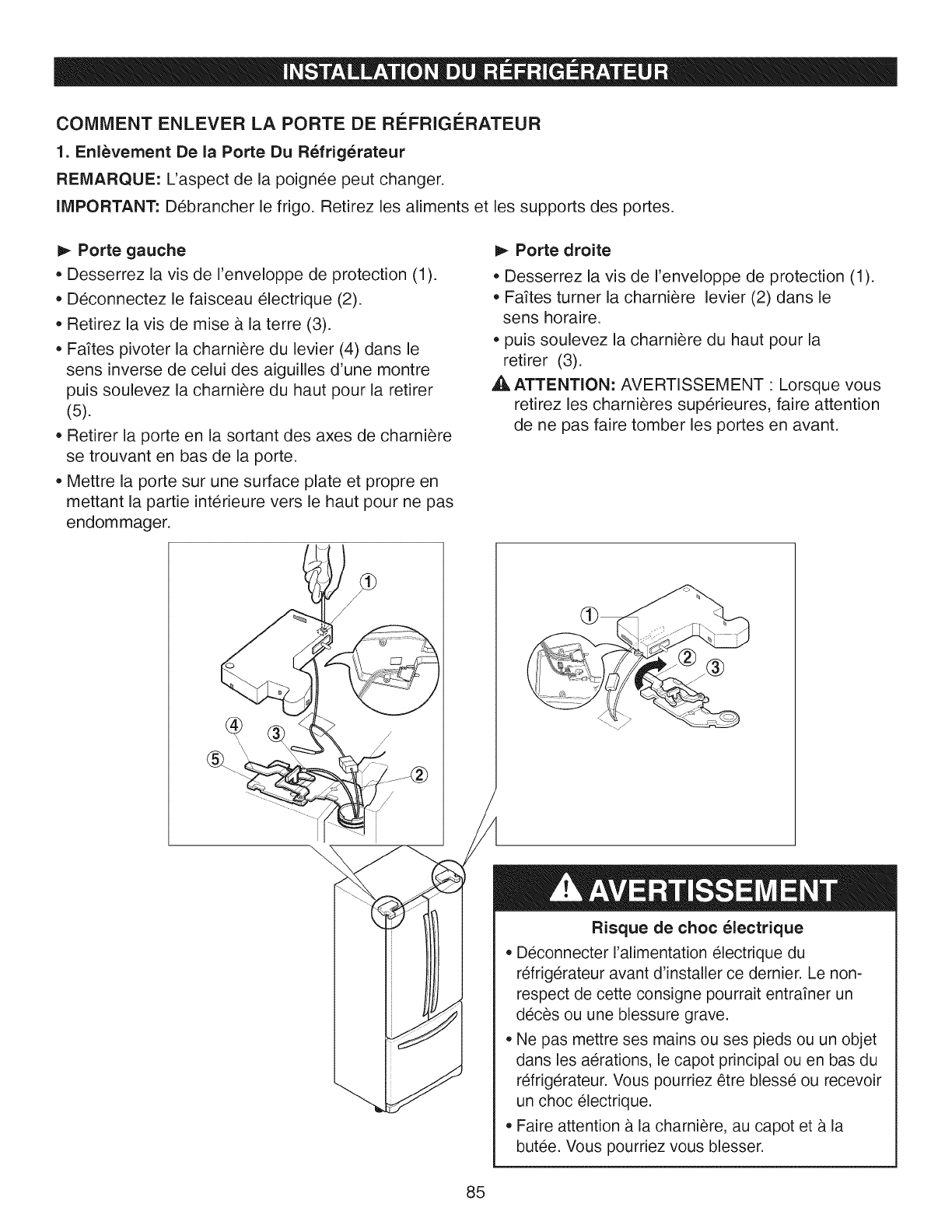 refrig@ateur Iorsque les portes sont ouvertes.