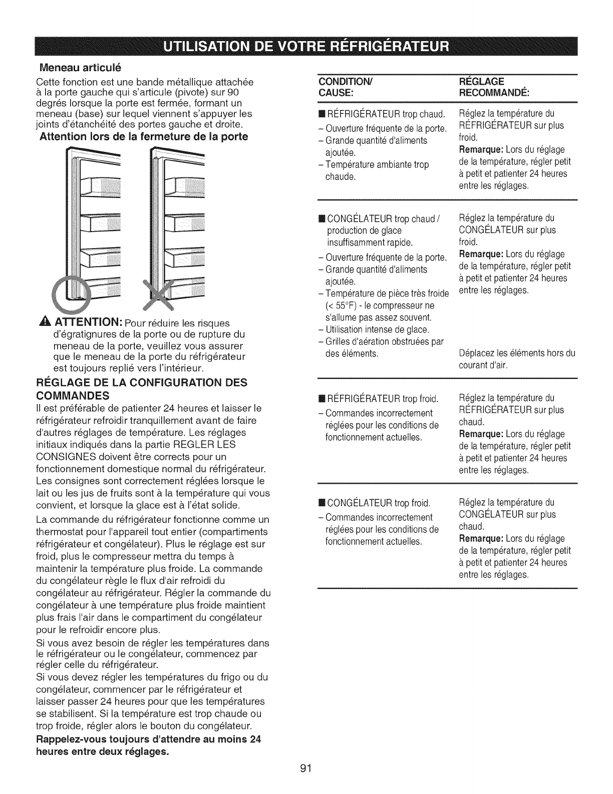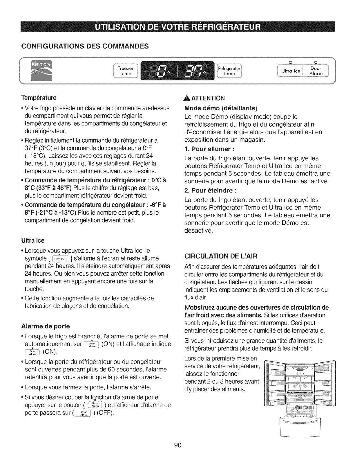 Temp) pour regler latemp@ature du compartiment du refrig6rateur