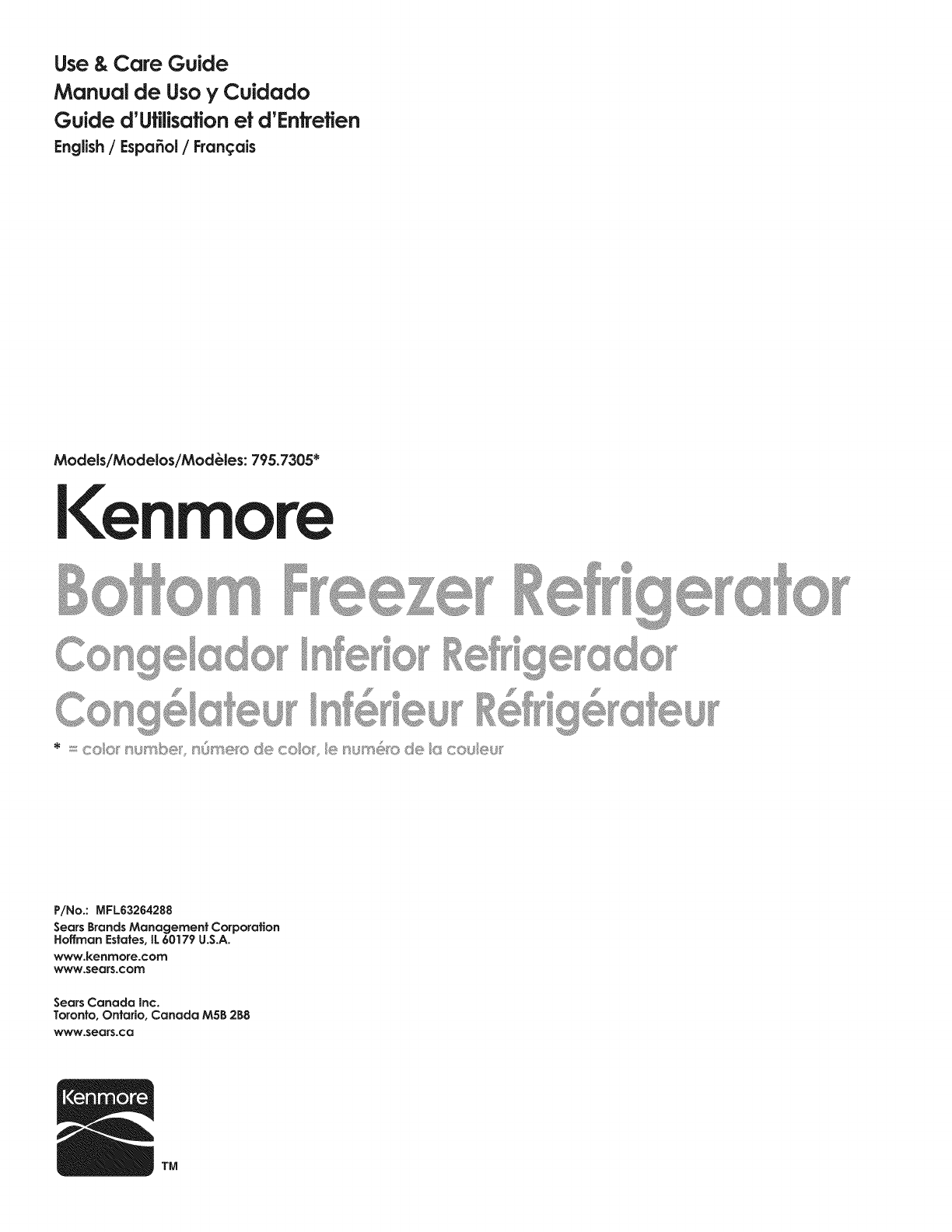 Kenmore 79573052410 User Manual REFRIGERATOR Manuals And Guides 1406347L