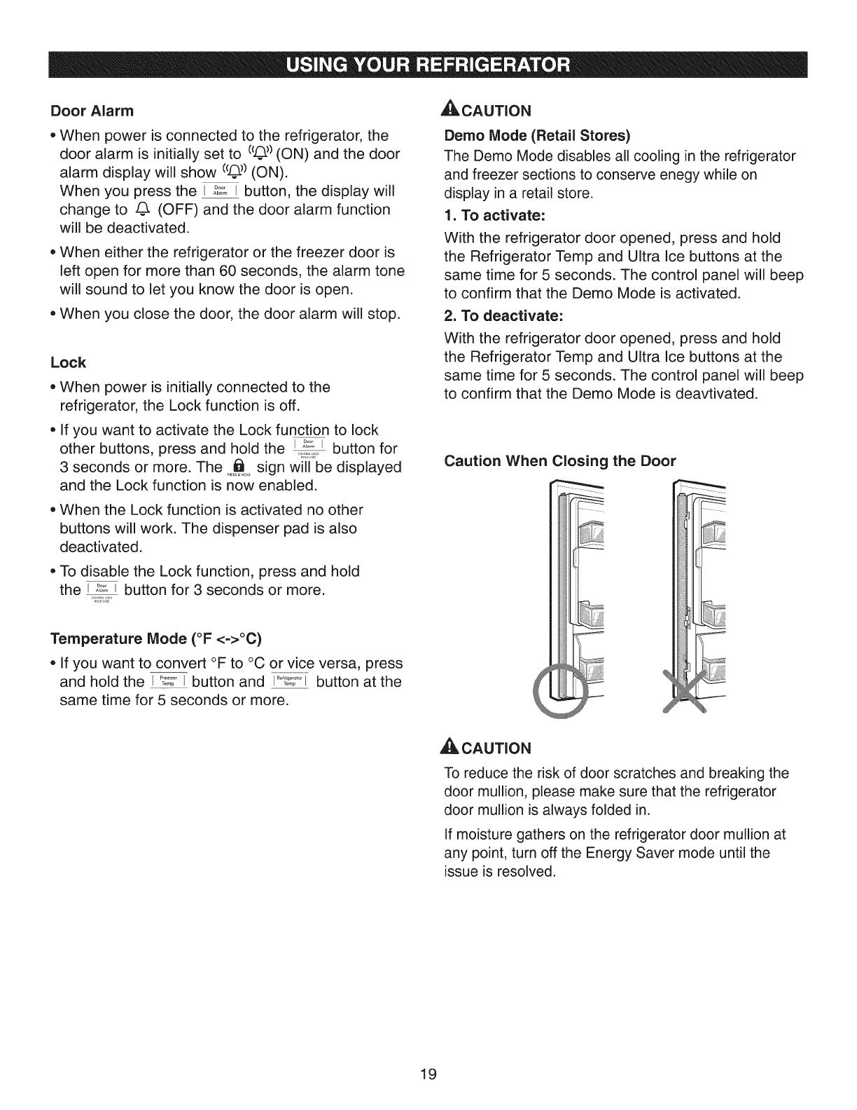 Door Alarm button for three seconds. The Control Lock icon will display. Once the controls are locked, follow the spe-