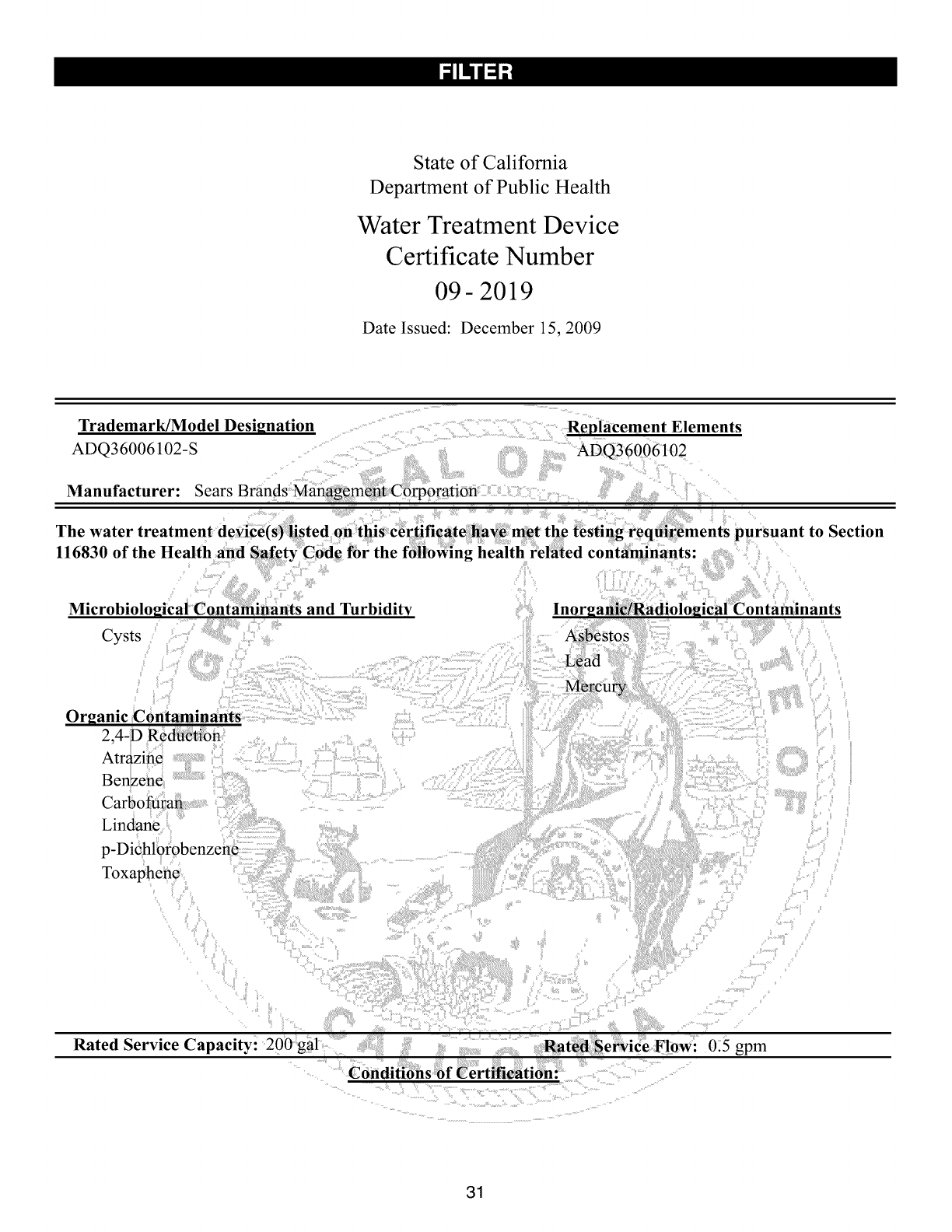 Home filter or reverse osmosis system is used. This can decrease water pressure. It is recommended not to