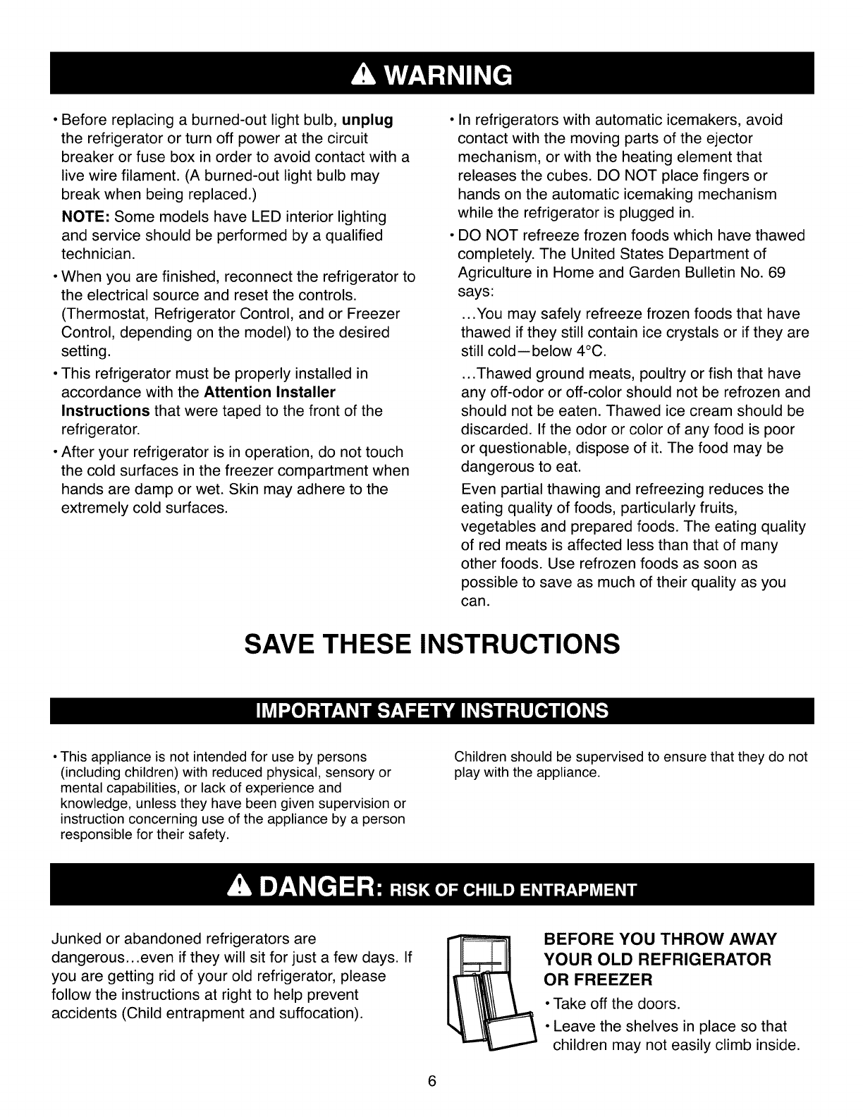 refrigerator or freezer, the refrigerator to return to normal temperature.
