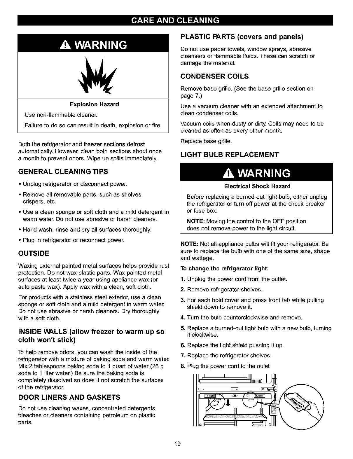 The interior of refrigerator needs cleaning. See Care and Cleaning section on page 19.