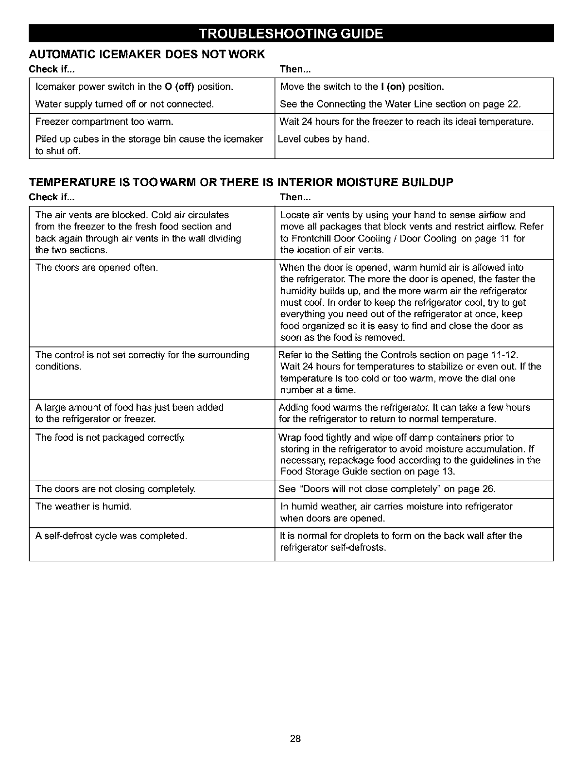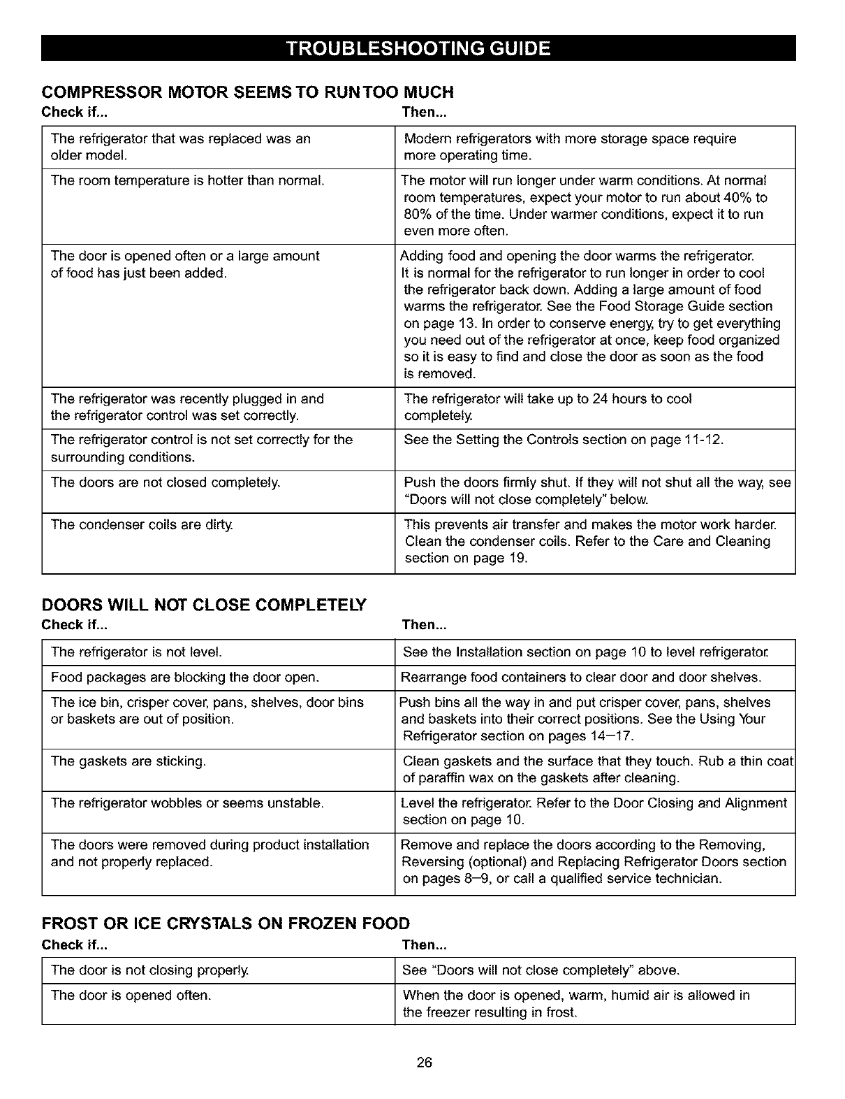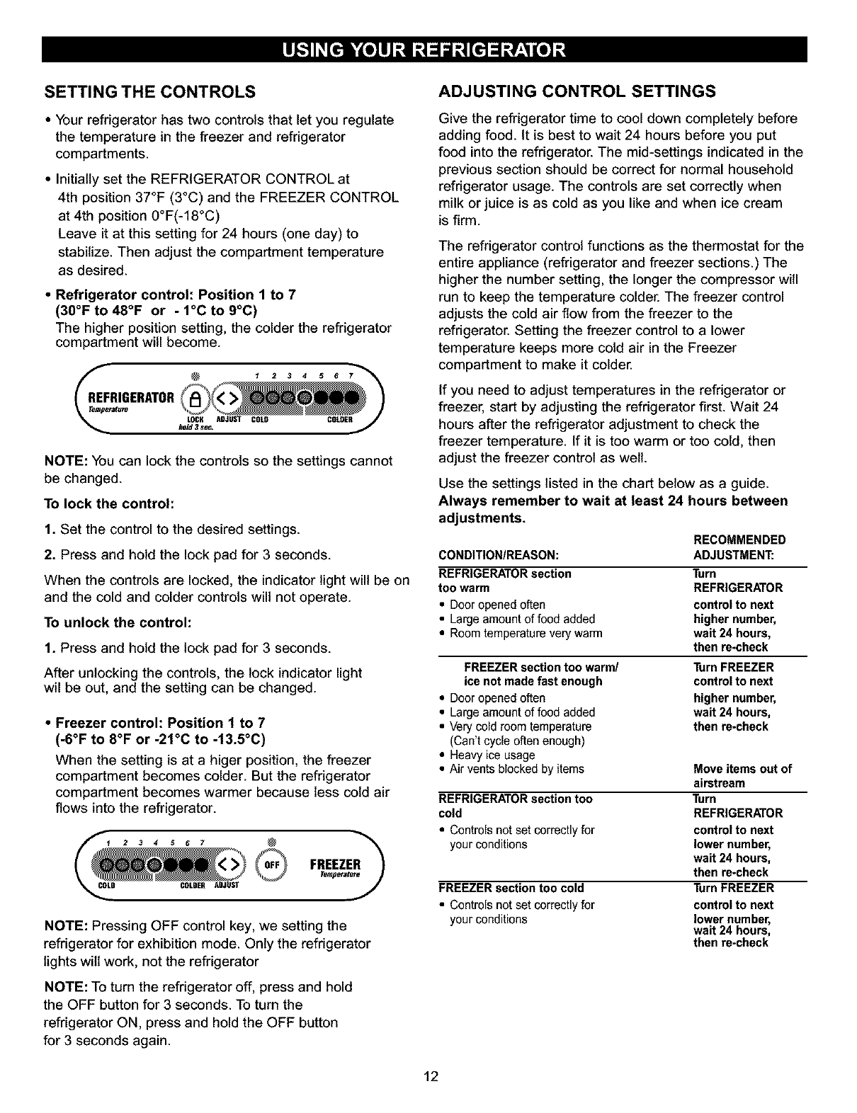 The refrigerator control is not set correctly for the See the Setting the Controls section on page 11-12.