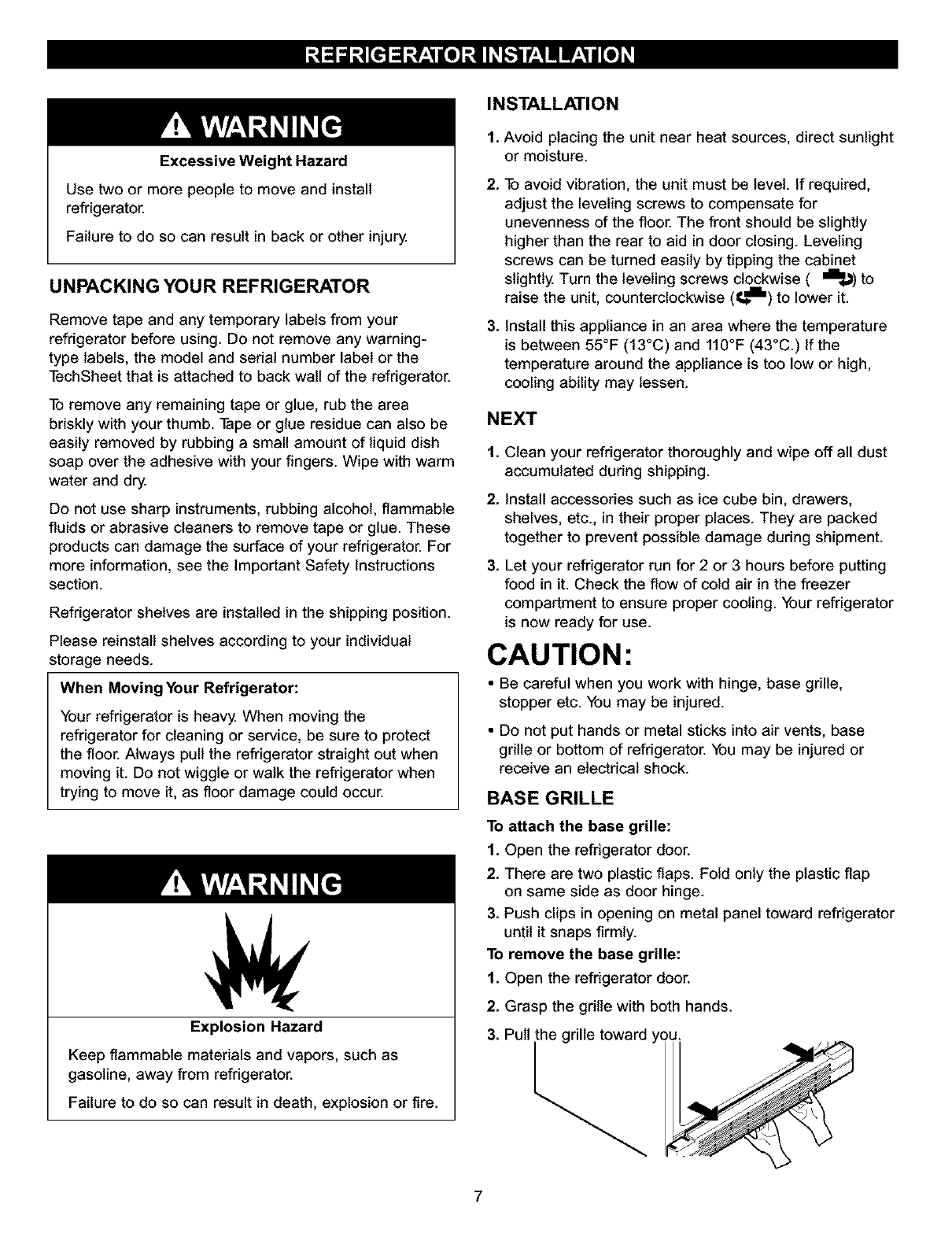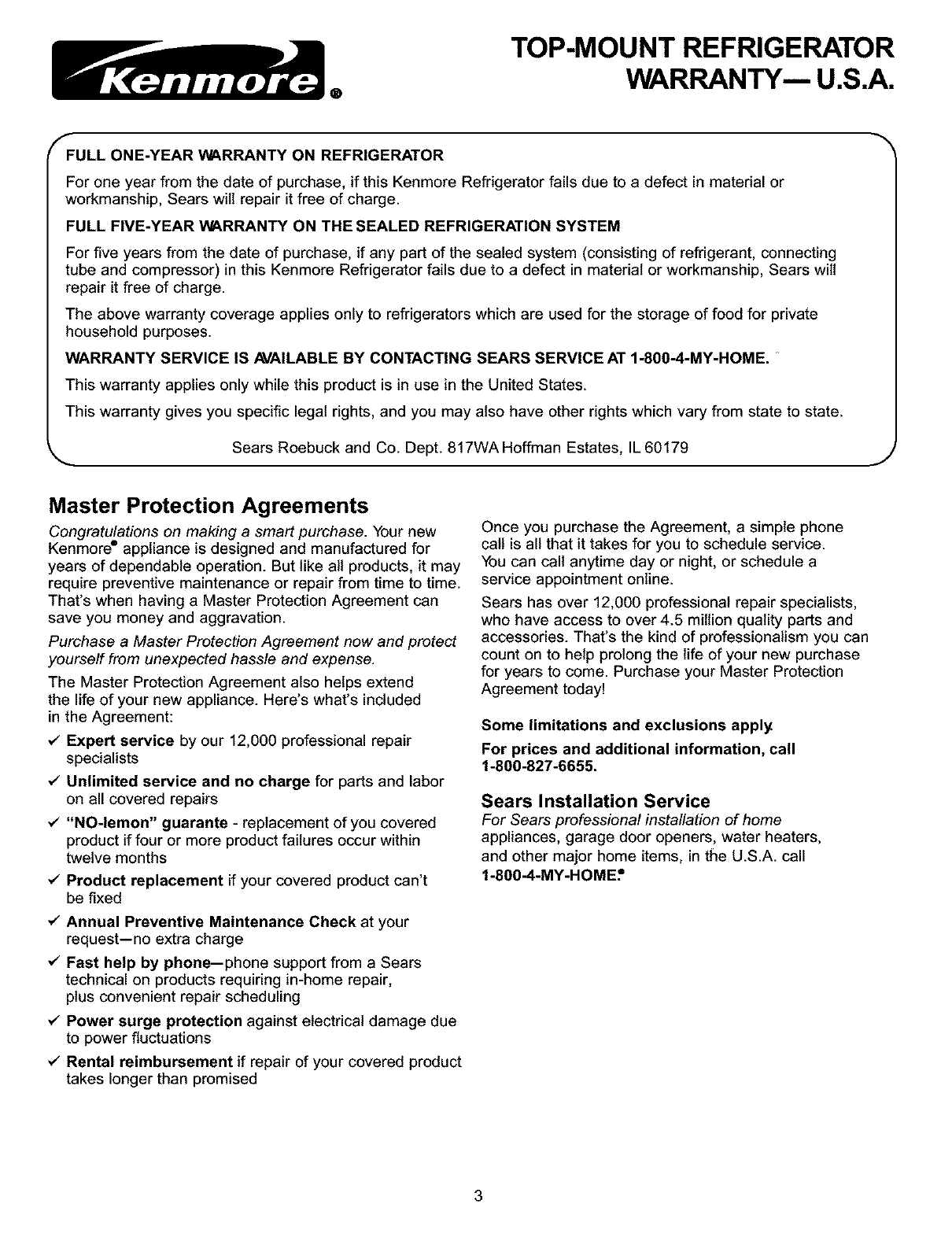 KENMORE Top Mount Refrigerator Manual L0306370 KENMORE Top Mount Refrigerator Owner's Manual, KENMORE Top Mount Refrigerator installation guides