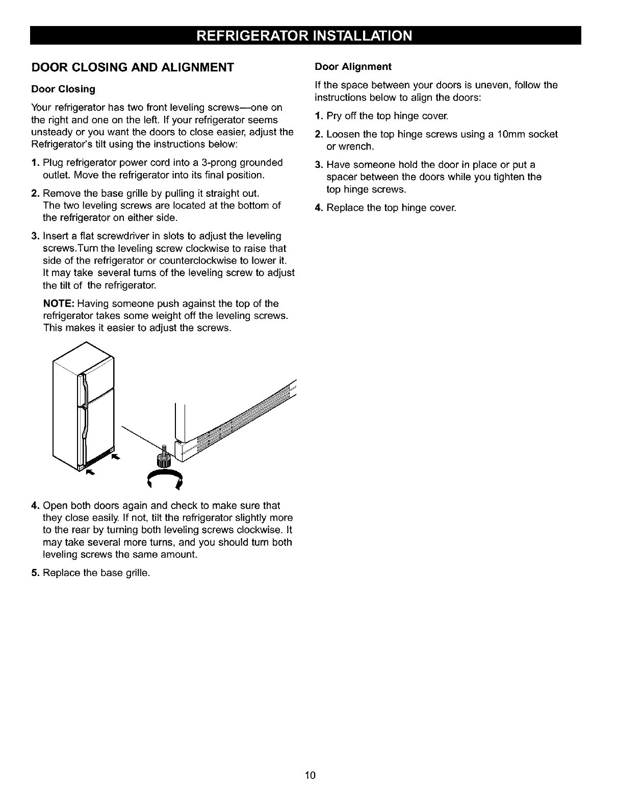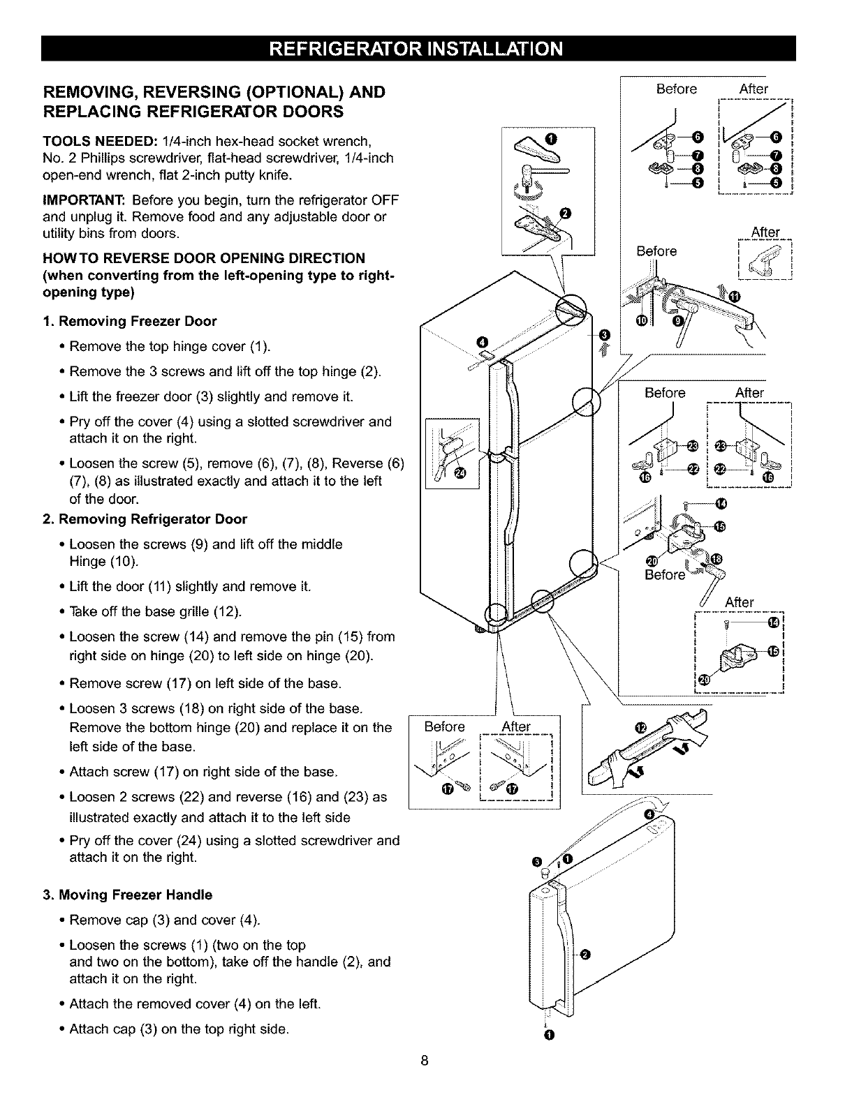 and not properly replaced. Reversing (optional) and Replacing Refrigerator Doors section