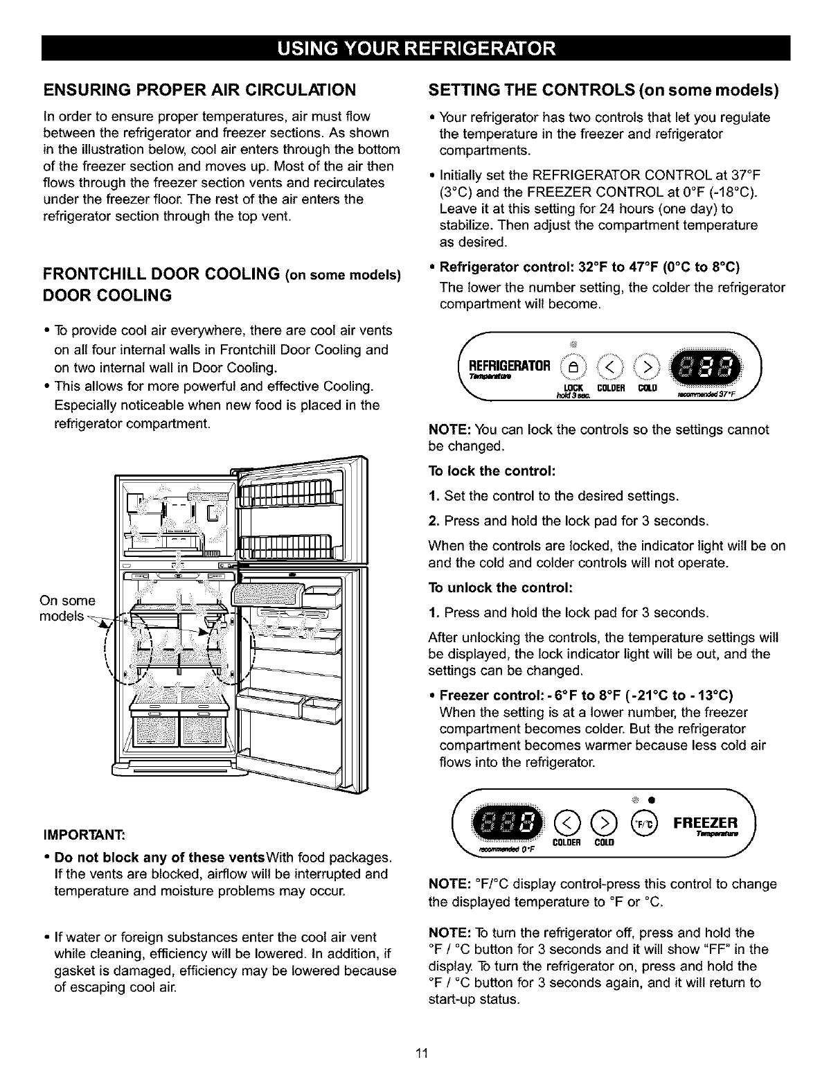 back again through air vents in the wall dividing to Frontchill Door Cooling /Door Cooling on page 11 for