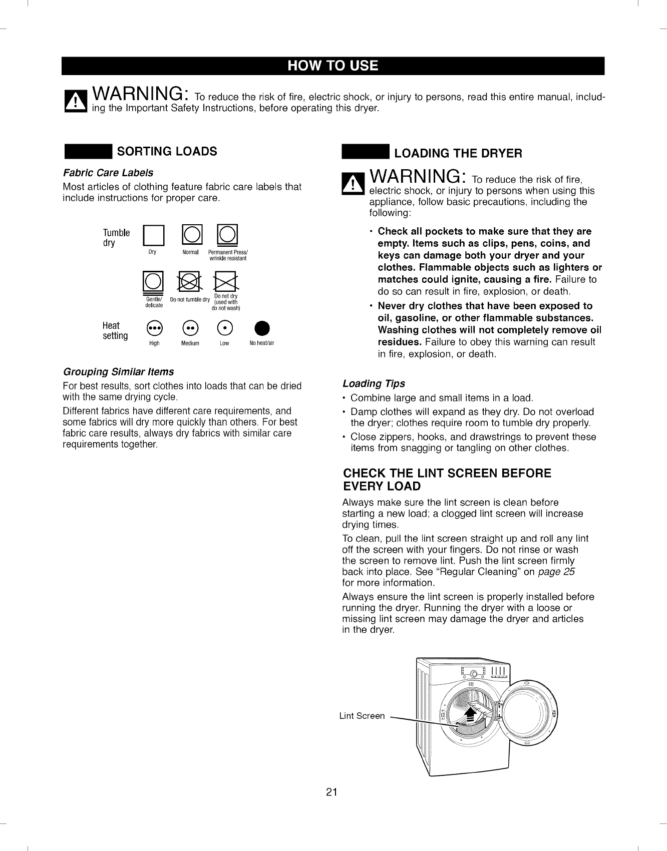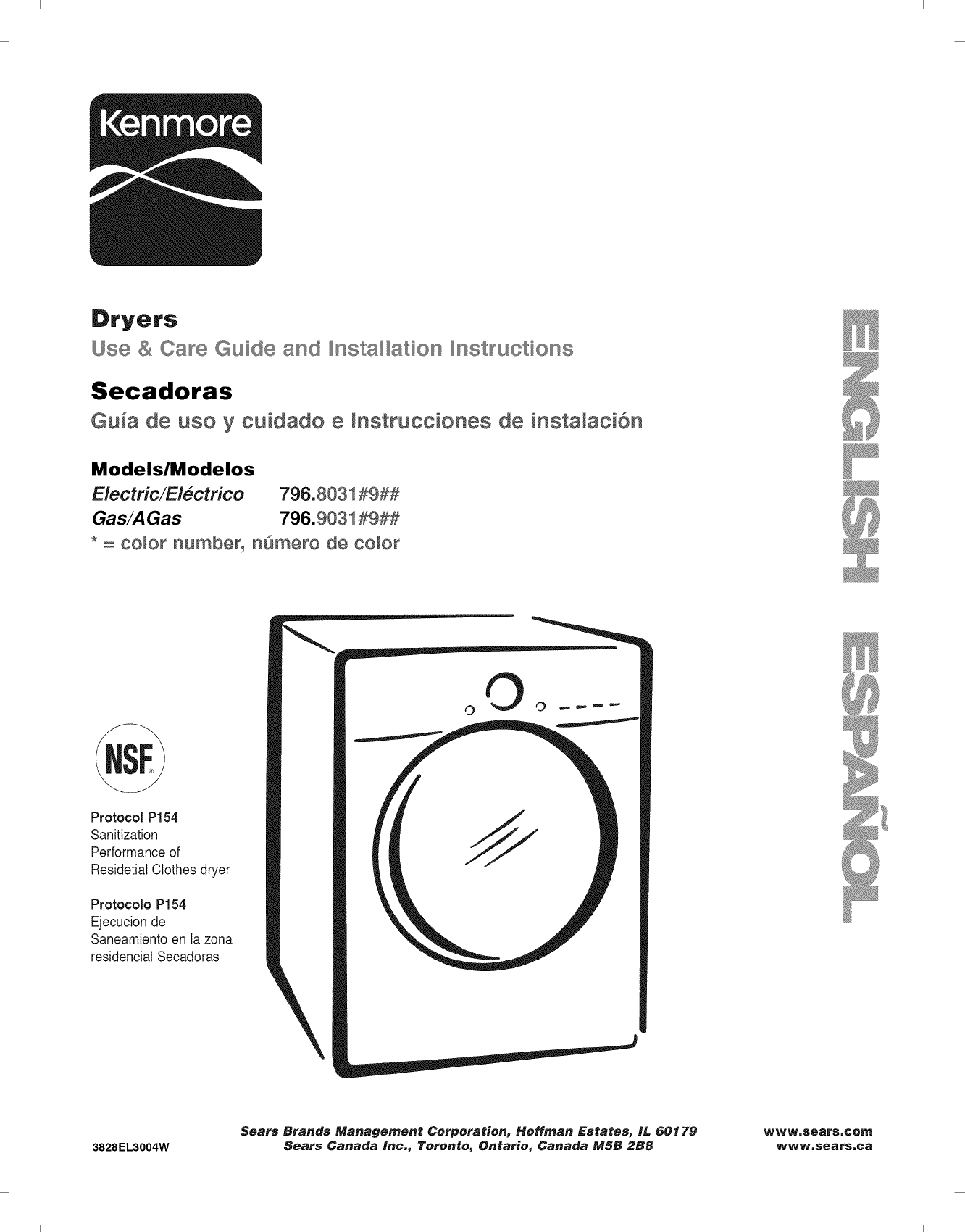 Kenmore 79680311900 User Manual DRYER Manuals And Guides L0910038