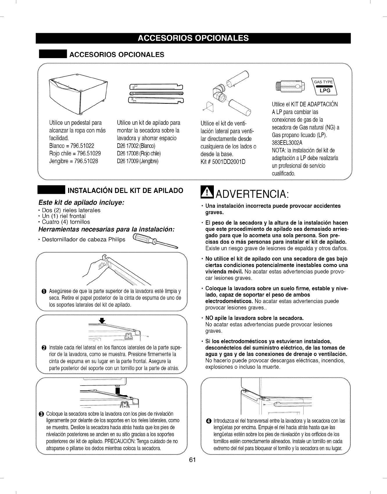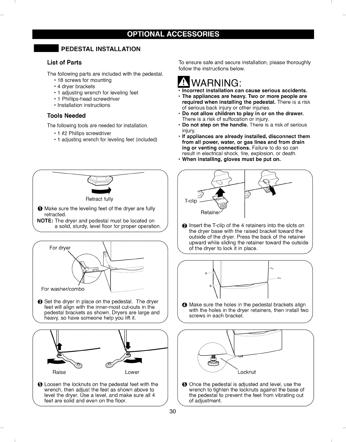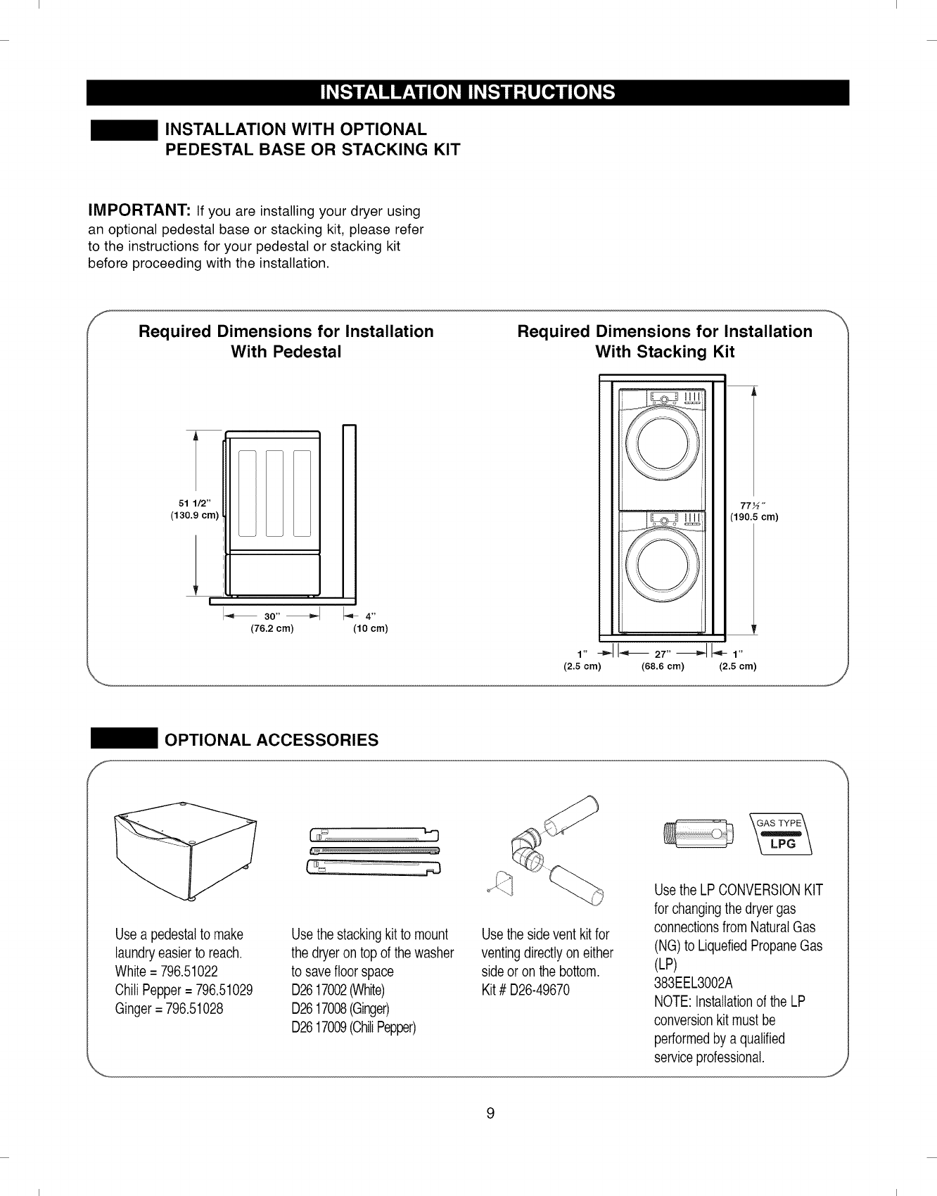 Installation with Optional Pedestal Base or Stacking Kit..... 9