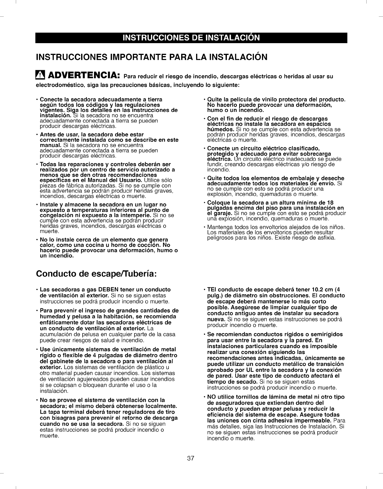 Gu_a de uso y cuidado e mnstrucciones de instalaci6n