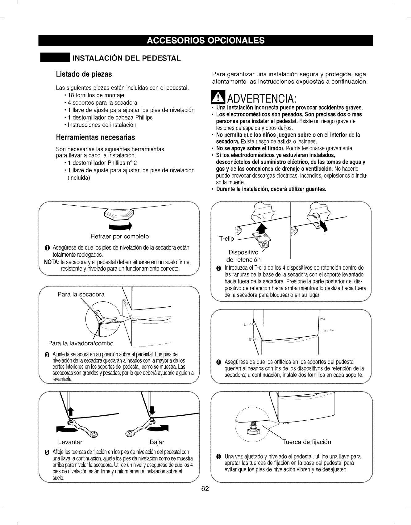 • 1 llave de ajuste para ajustar los pies de nivetaci6n