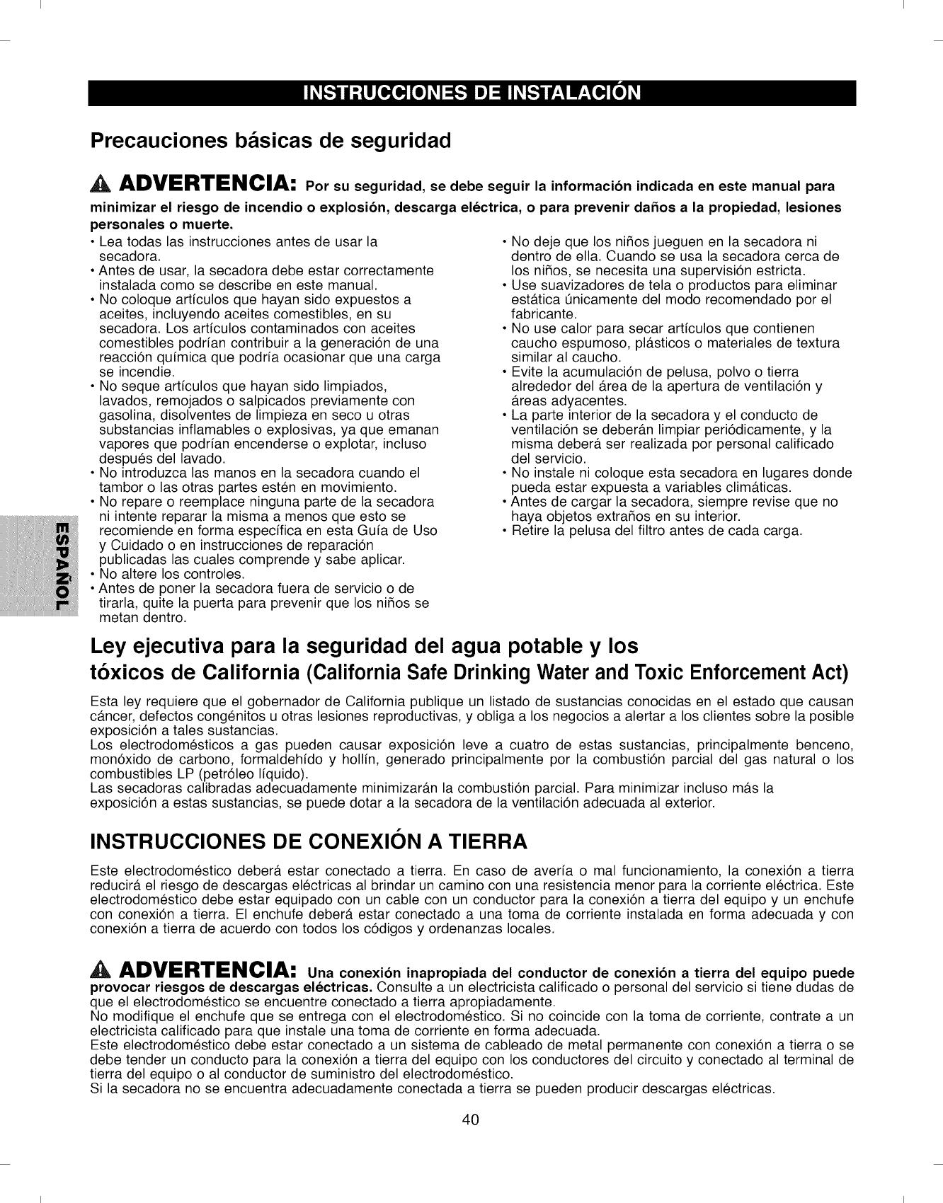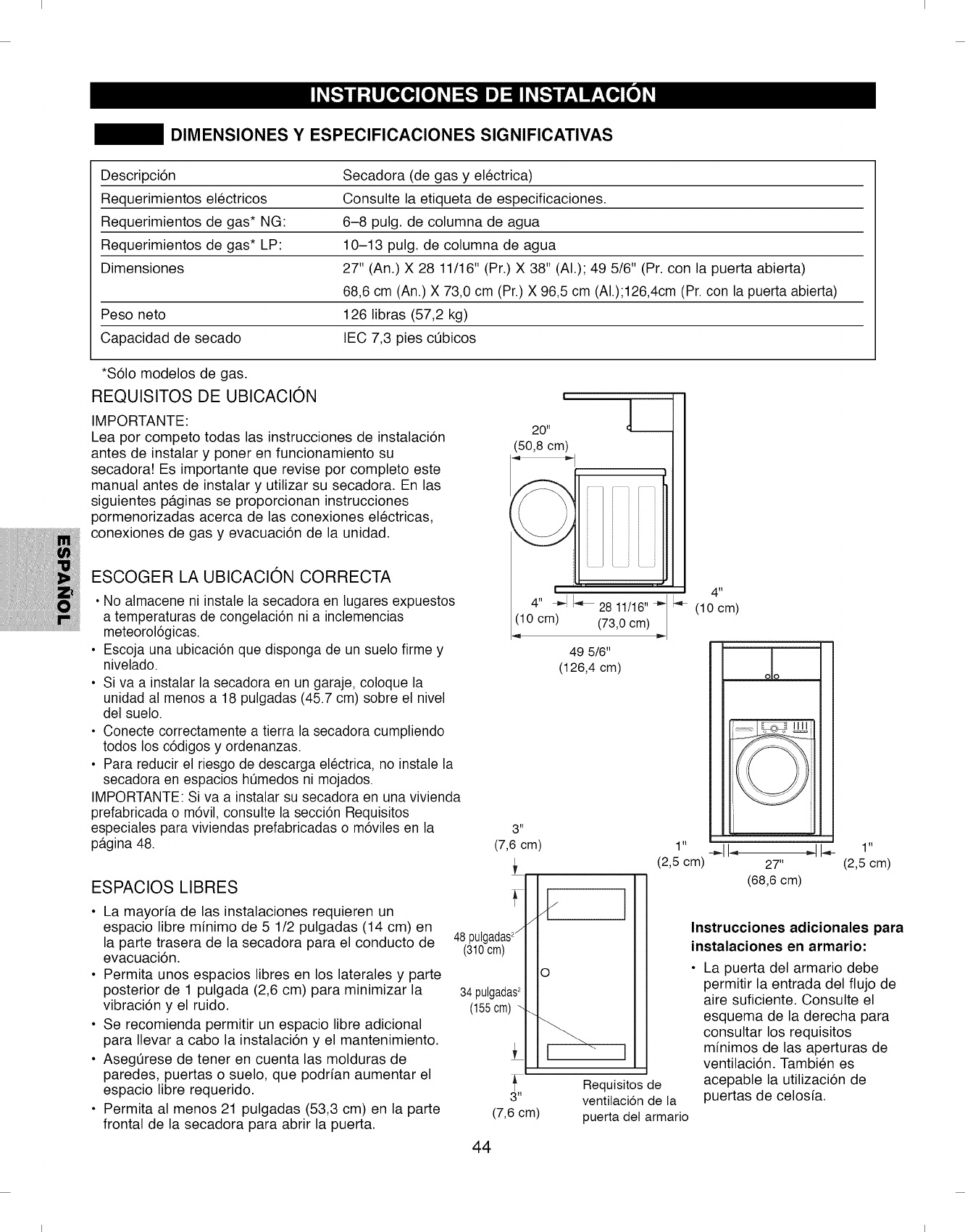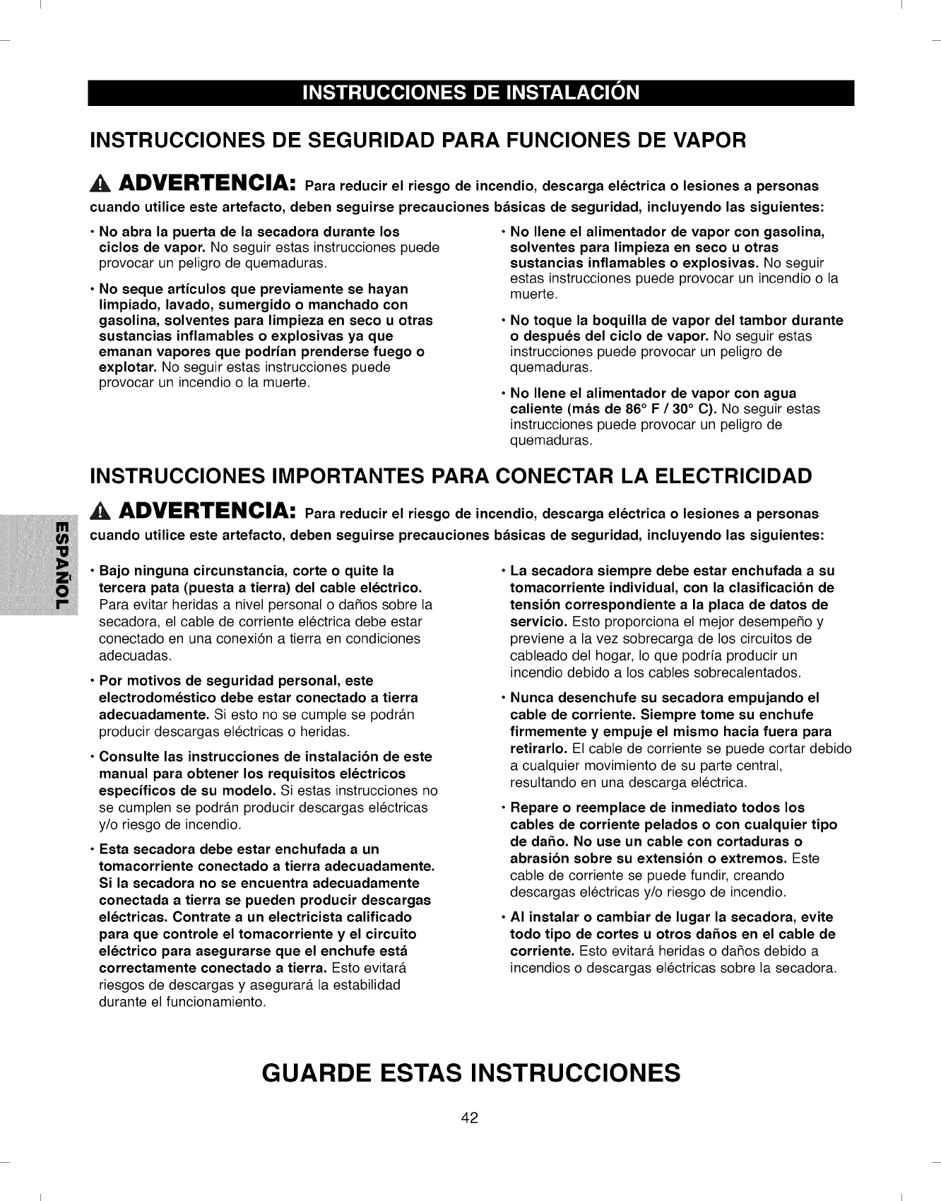 Gu_a de uso y cuidado e Jnstrucciones de insta_aci6n